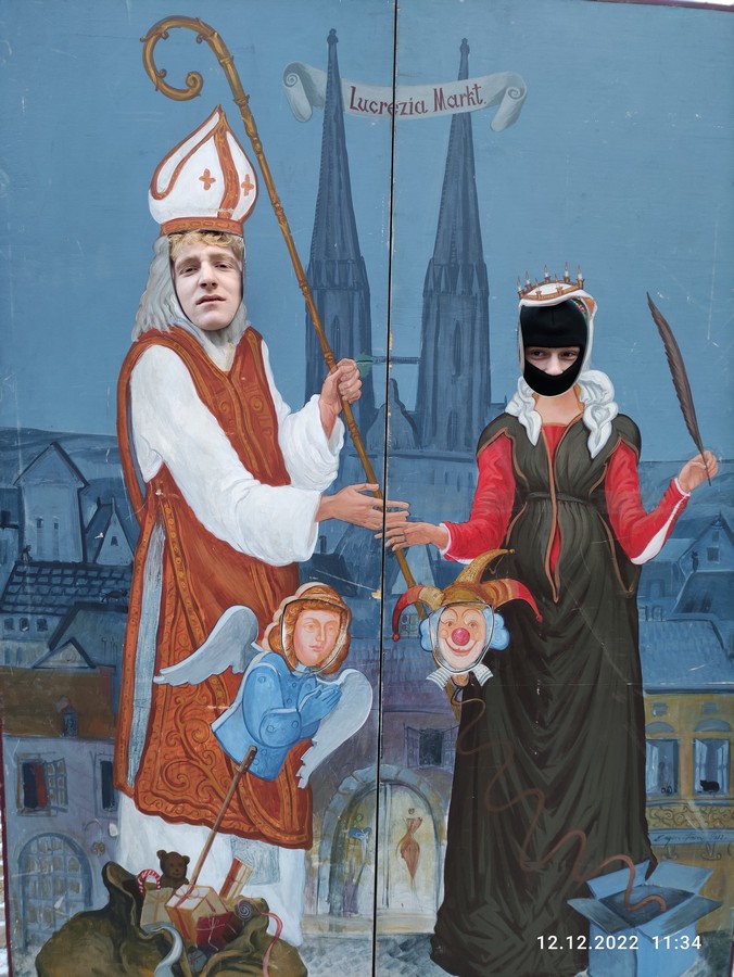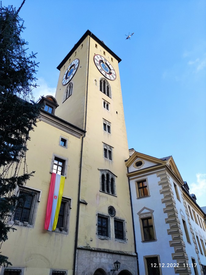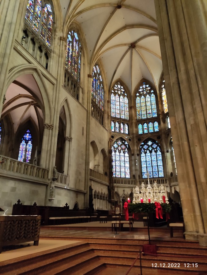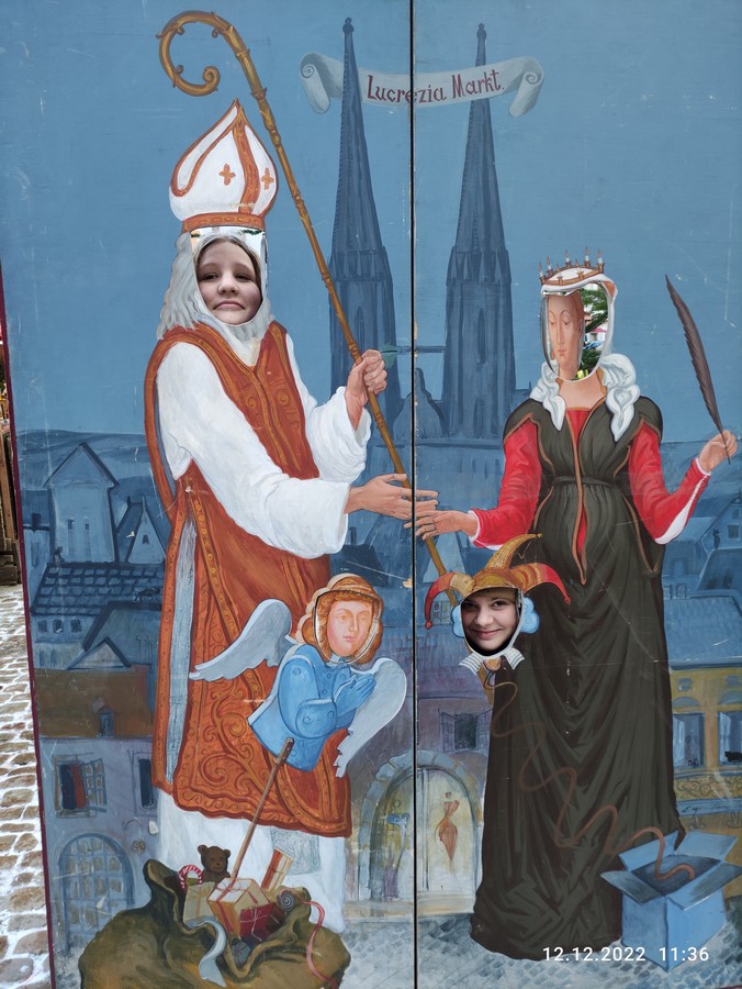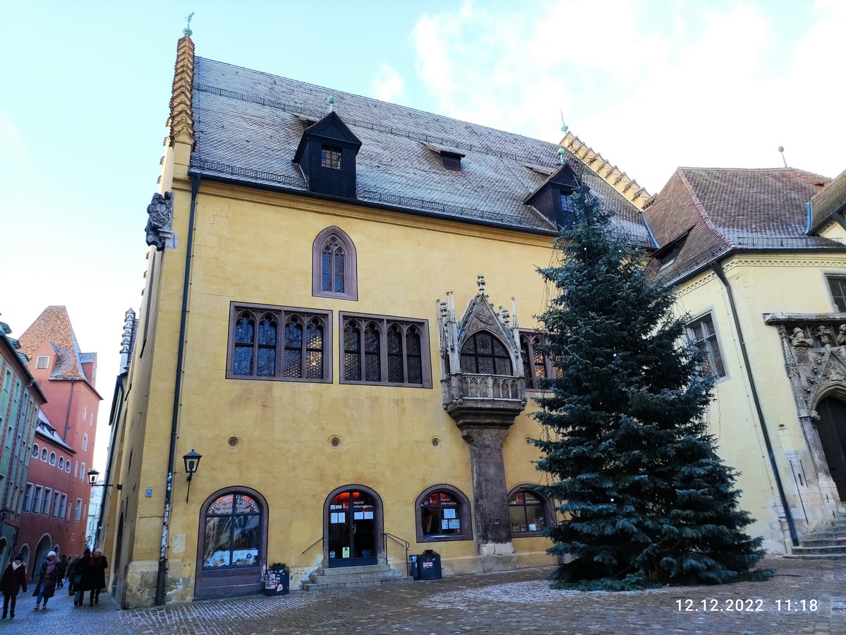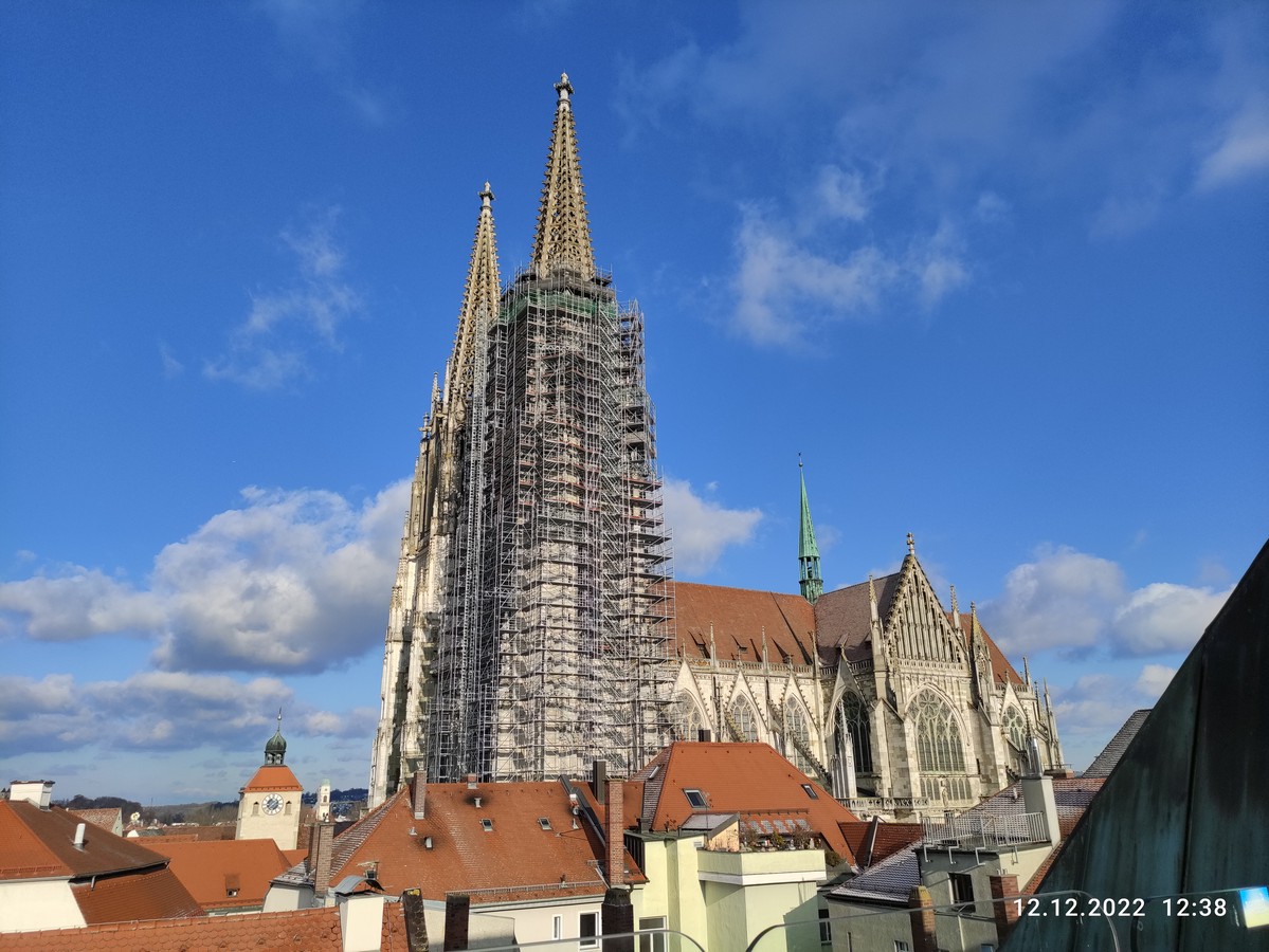 v Německu Steinerne Brücke (Kamenný most) jsme došli na jedny z nejkrásnějších vánočních trhů v Německu, a to konkrétně na Lucrezia-Markt na Kohlemarkt a opodál na Haidplatz a dále na vánoční trhy na Neupfarrplatz, u kterého jsme zamířili i na nákupy suvenýrů a vánočních dárků do Galeria Kaufhof, jejíž střecha nám poskytla nejen možnost občerstvení, ale především krásný výhled na historické centrum.