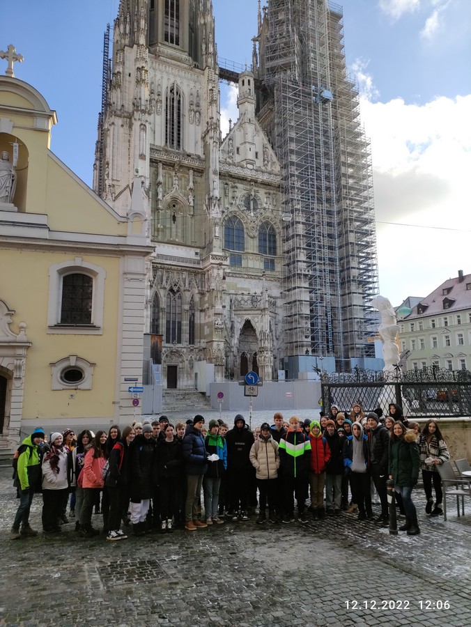 a devátých tříd do Regensburgu (Řezno) procvičit si získané znalosti němčiny v praxi. Zároveň si každý žák musel připravit krátké povídání pro ostatní účastníky exkurze o konkrétní památce, řece v tomto městě či o samotném Německu, abychom si všichni rozšířili naše obzory znalostí.