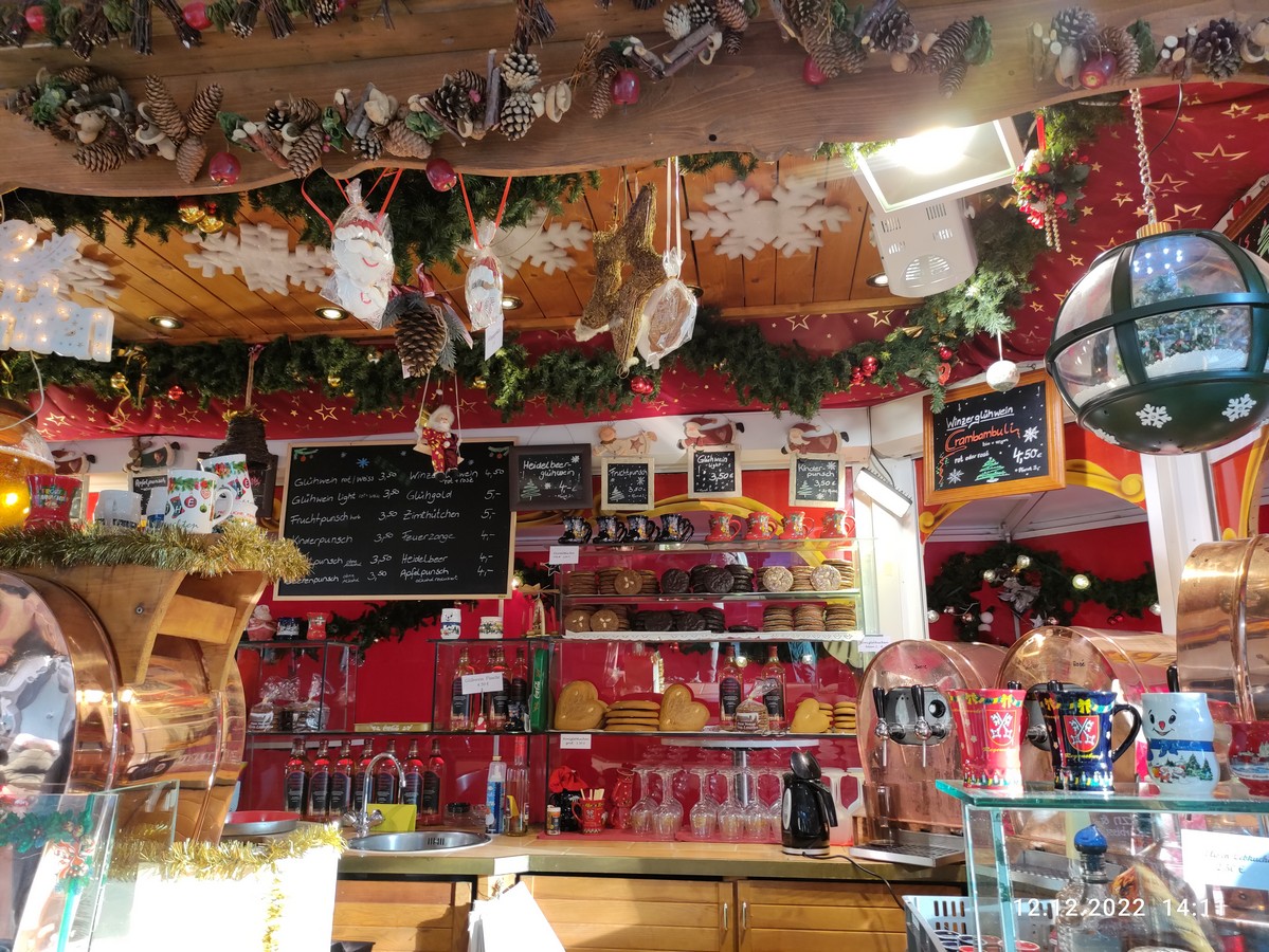k snědku trdelník (Baumstriezel), v restauraci dortík nebo jak si někteří kupovali obyčejné ponožky, aby jim bylo v mrazivém počasí tepleji.