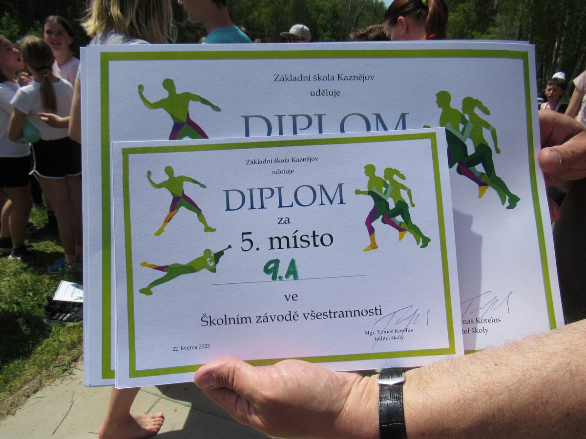 V pondělí 22. května 2023 se uskutečníl druhý ročník Školního závodu všestrannosti. Pro tento rok byl závod přesunut do okolí koupaliště v Kaznějově. Díky pěknému počasí a skvělé organizaci všech učitelů druhého stupně se celá akce vydařila.