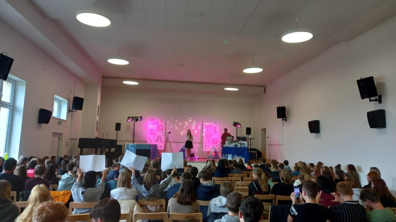 Soutěžní galavečer moderoval Petr Jančařík a sál praskal ve švech. Naše hvězdy přišli podpořit nejen nejbližší členové rodiny, ale i spolužáci, vedení školy a učitelé, kteří byli právem pyšní na své žáky. Pěvecké výkony byly obdivuhodné, proto bylo velmi těžké vybrat z každé kategorie tři nejlepší. Toto bylo úkolem odborné poroty, jejíž členům nikdo jejich rozhodování nezáviděl.