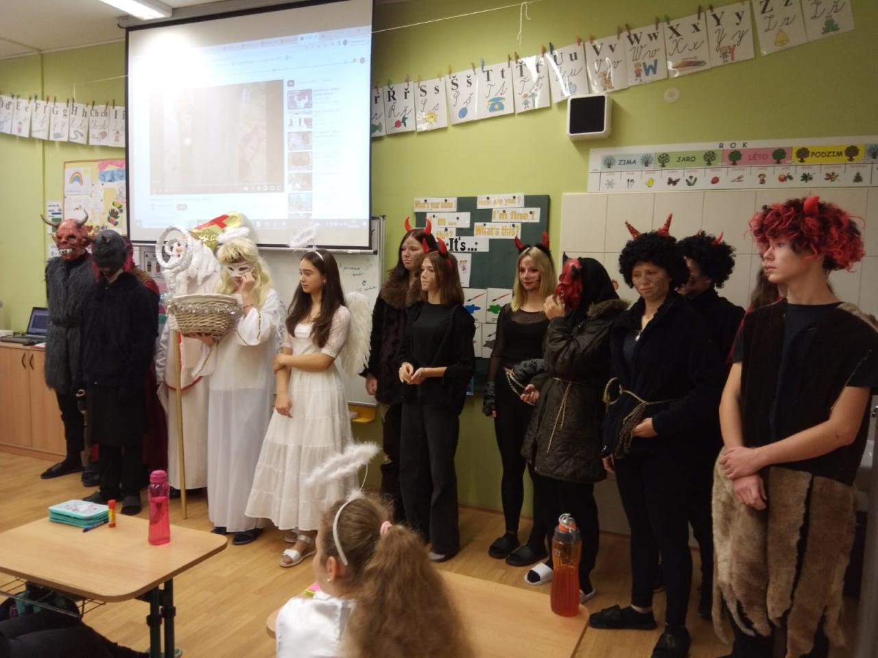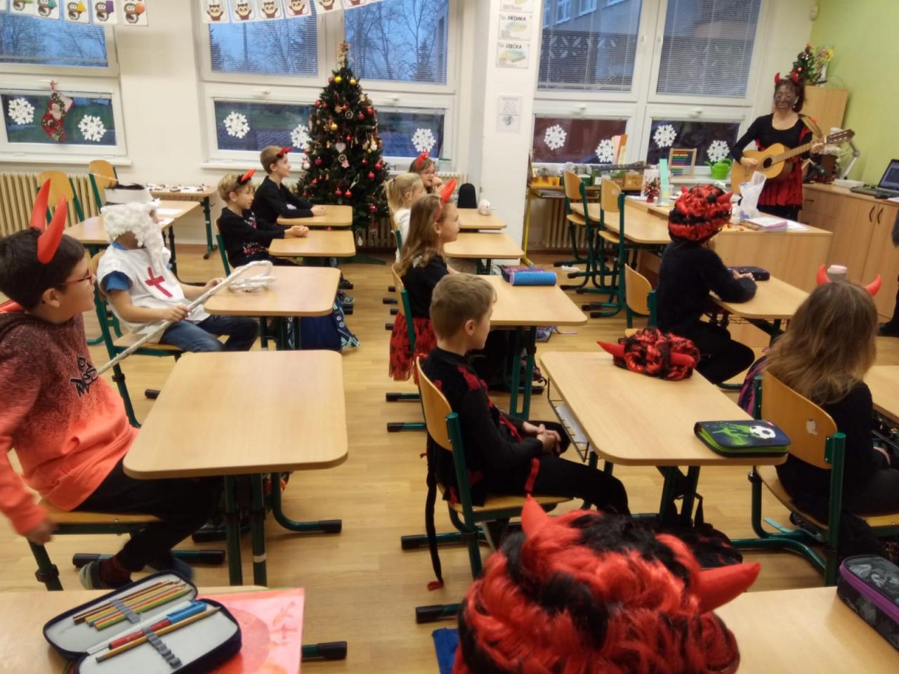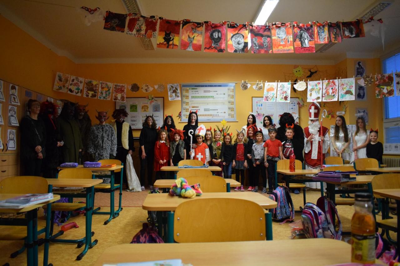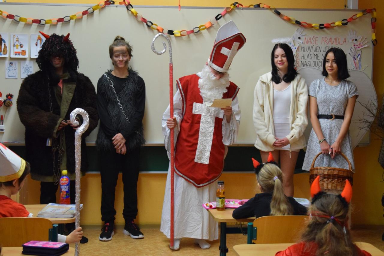 Mikuláš, andělé a čerti obcházeli v pondělí 5. prosince třídy na prvním stupni.