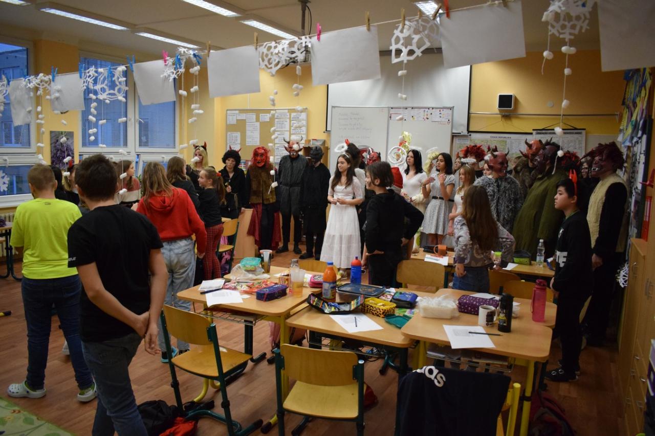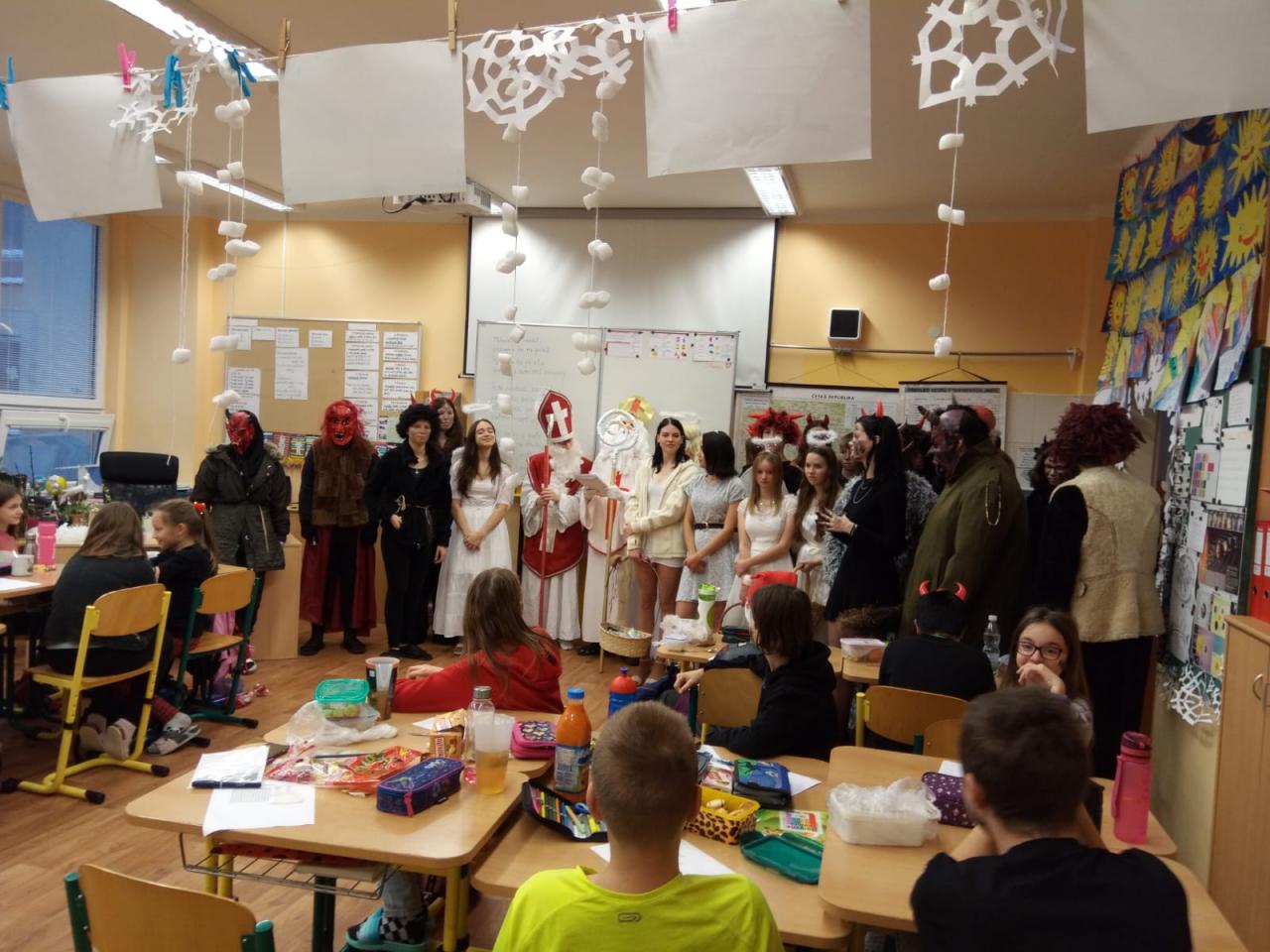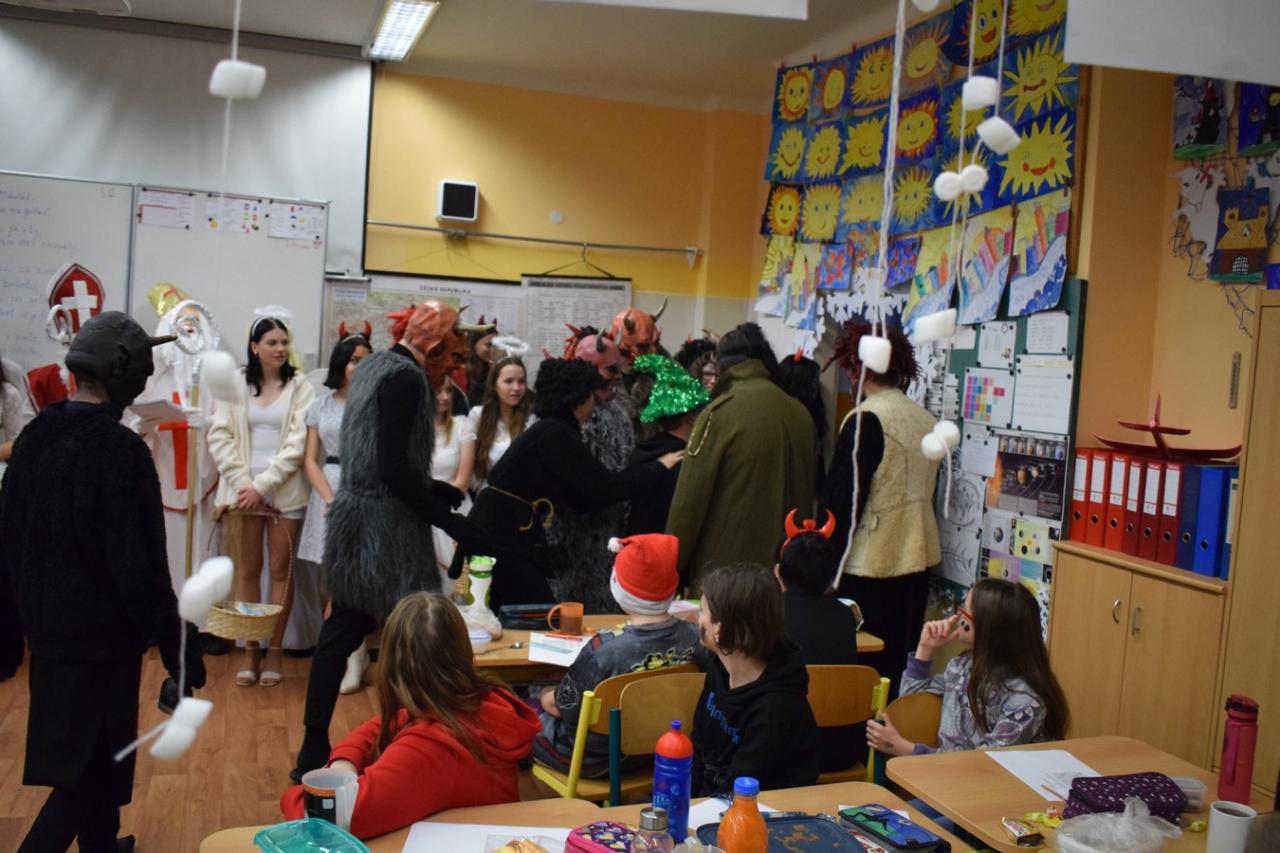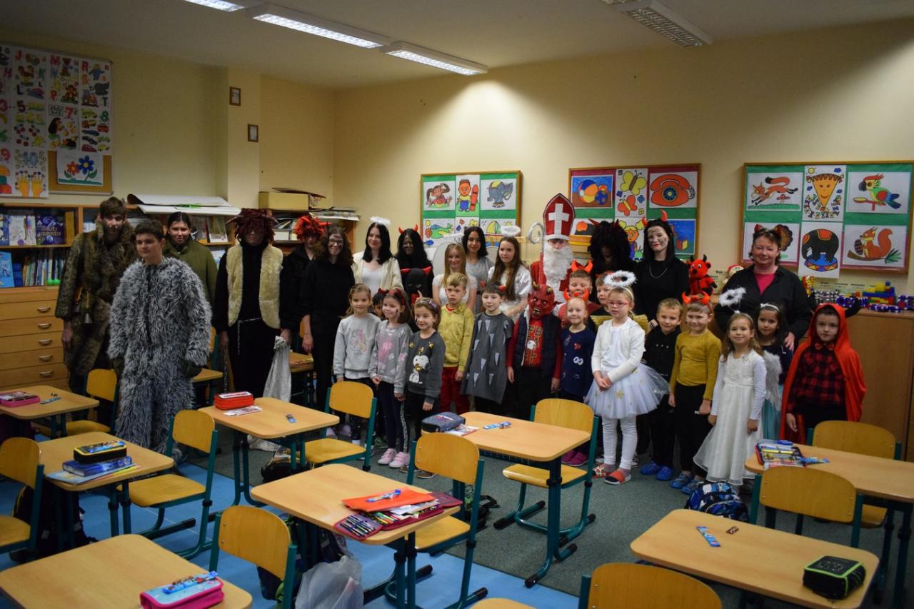 Mikuláš, andělé a čerti obcházeli v pondělí 5. prosince třídy na prvním stupni.