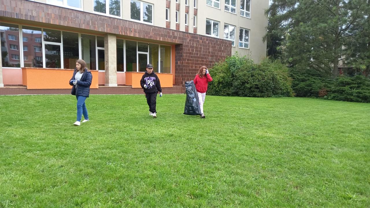 V rámci projektu Ukliďme Česko žáci z 6.A s paní učitelkou Starou uklízeli v okolí naší školy. I když se tato akce často opakuje, jsme našli poměrně velké množství odpadu. Ten jsme vytřídili a dali tam, kam patří.