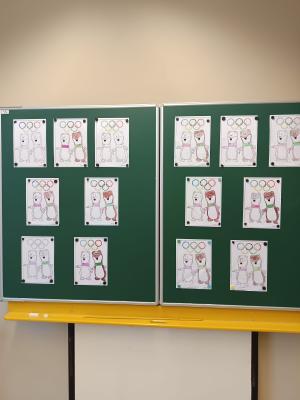 Při pracovní činnosti si děti vyrobily zimní obrázek s tučňáky.