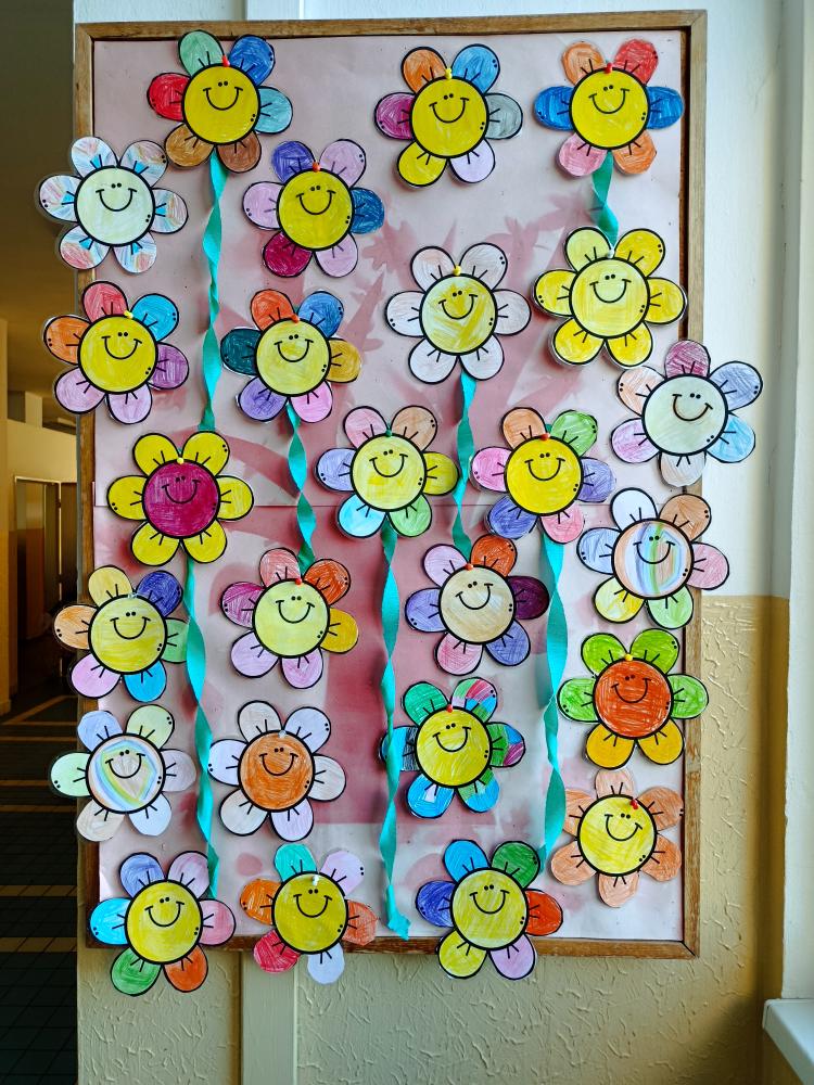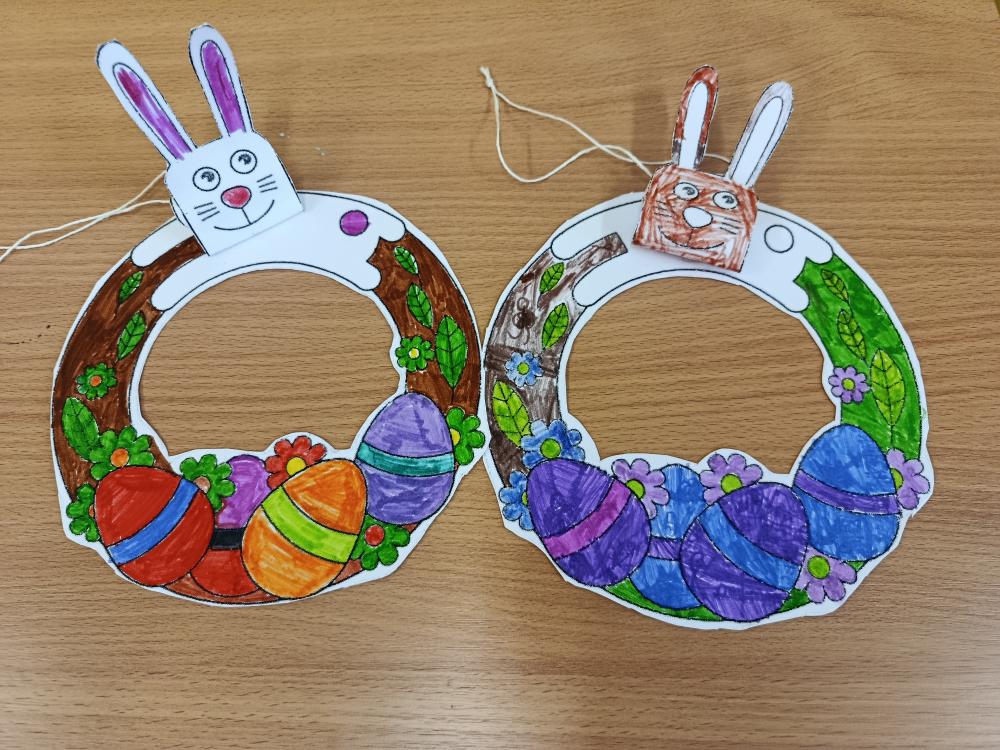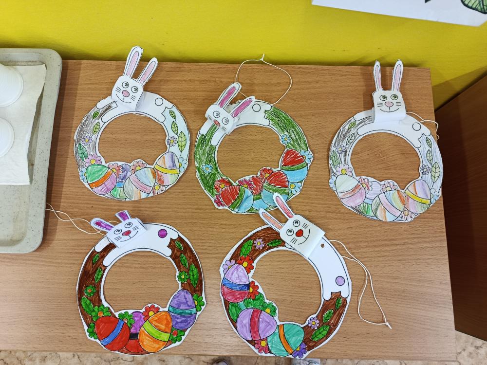 Náplň za měsíc březen: velikonoční věneček, vajíčko – zápich, kytičky – výzdoba nástěnky.