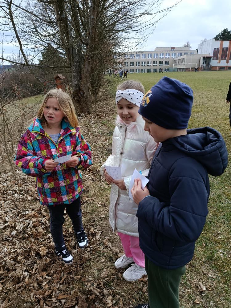 Oslava jara, velikonoční stezka na školním hřišti. Po vyplnění tajenky čekala na děti sladká odměna.