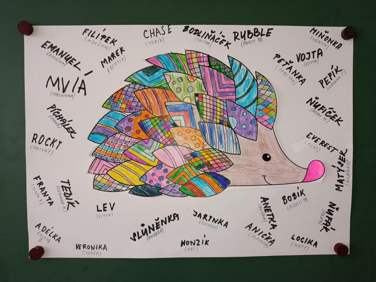 Společná práce, vybarvení a pojmenování ježečka.