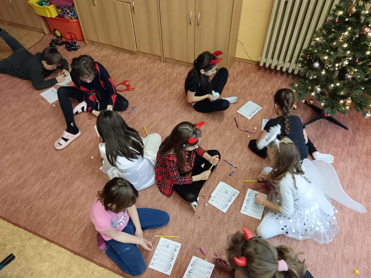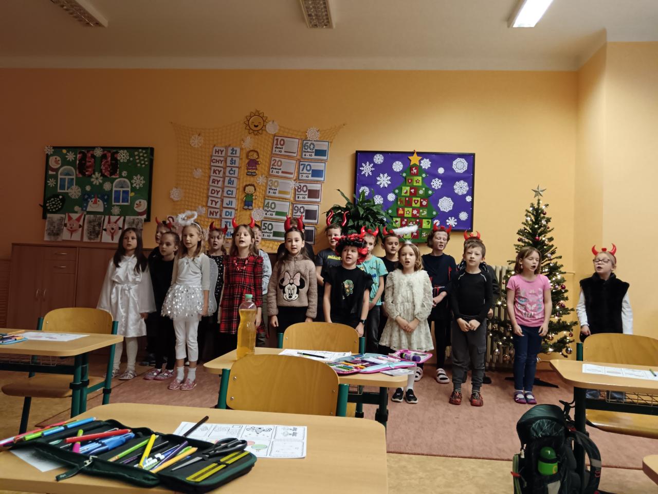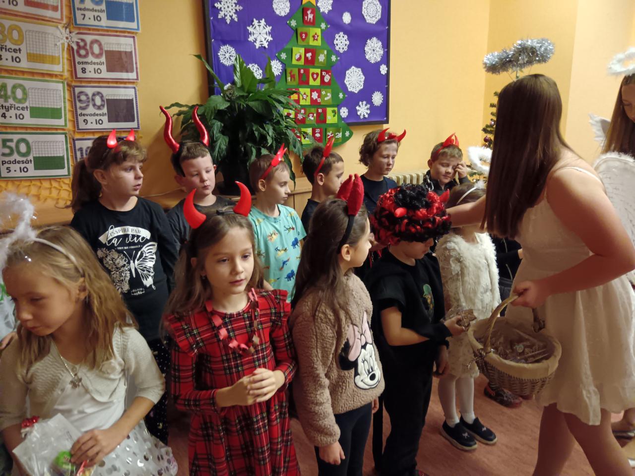 V pátek 5. prosince 2025 nás ve třídě navštívil Mikuláš s čerty a anděly. Od Mikuláše jsme si vyslechli své dosavadní hříchy a svatosvatě slíbili, že se polepšíme. Jako poděkování jsme zazpívali čertí písničku a poté už jsme se těšili z andělské nadílky.