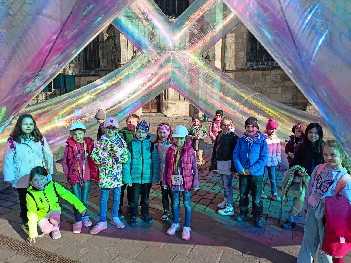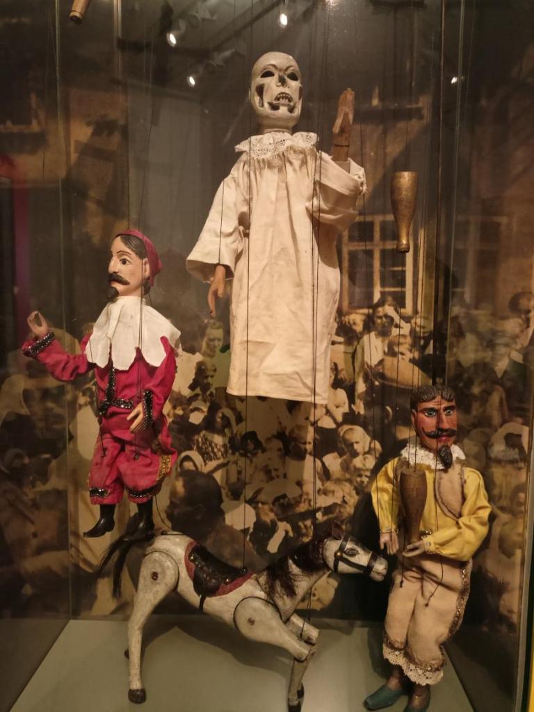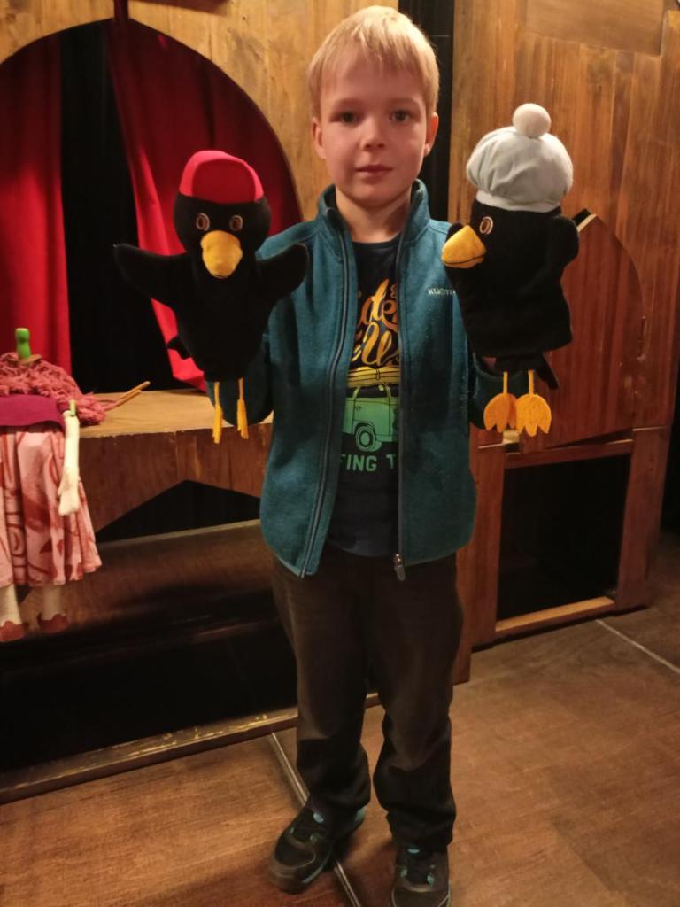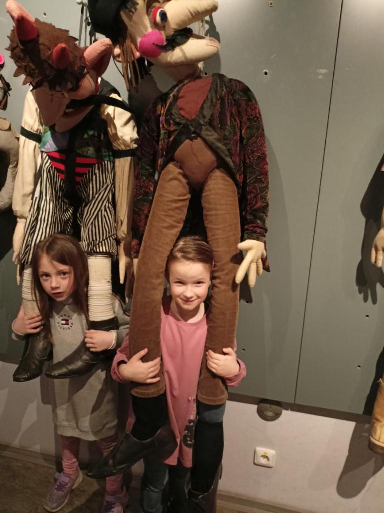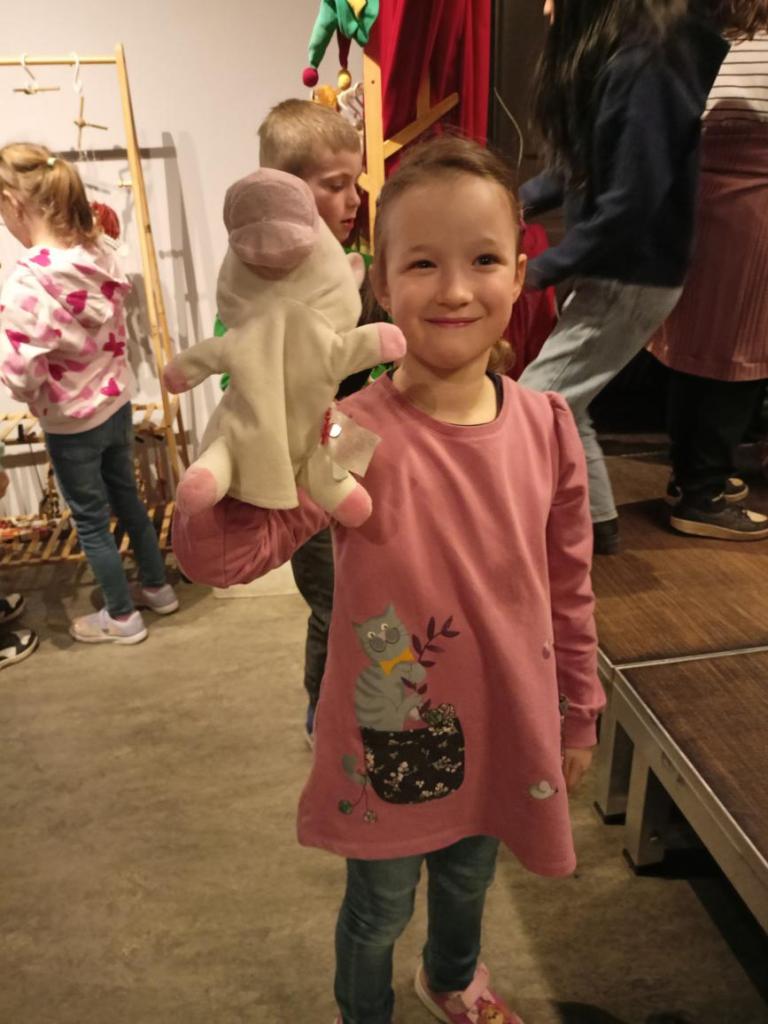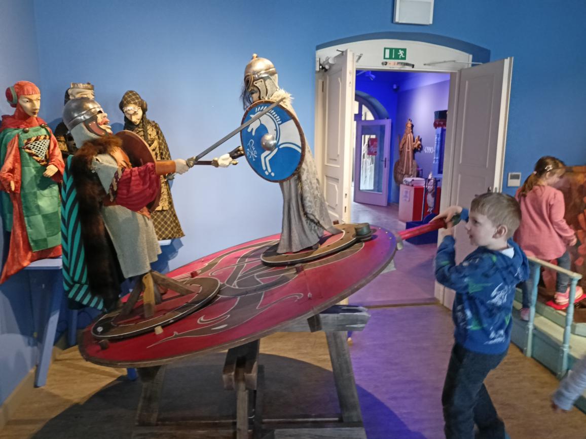 Paní průvodkyně nám ukázala různé druhy loutek, dozvěděli jsme se zajímavosti o vzniku a výrobě loutek, o kočovném divadle, prohlédli jsme si krásné exponáty loutek, maňásků, marionet a dokonce si děti mohly samy zahrát divadlo na "prknech, co znamenají svět". Na závěr jsme si vyrobili sice papírovou ale pohyblivou loutku. A samozřejmě nemohl chybět nákup suvenýrů. :-)