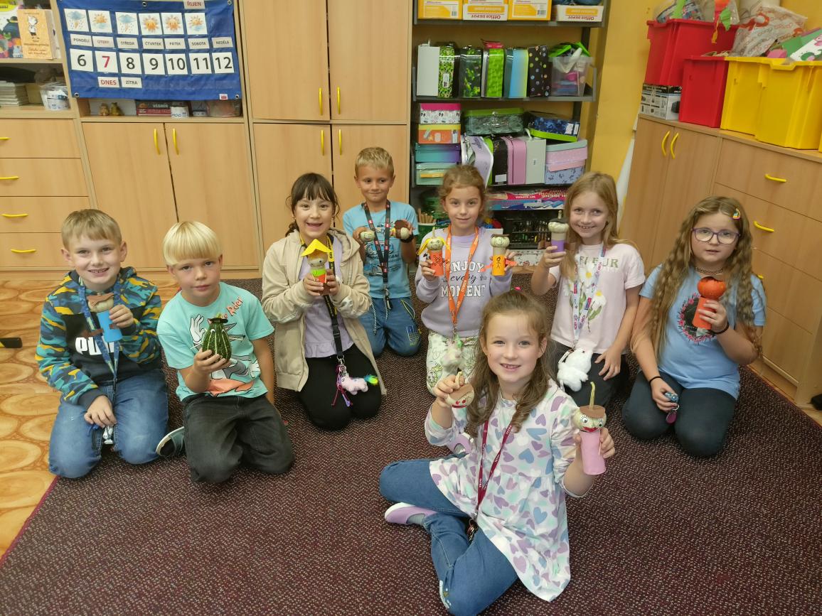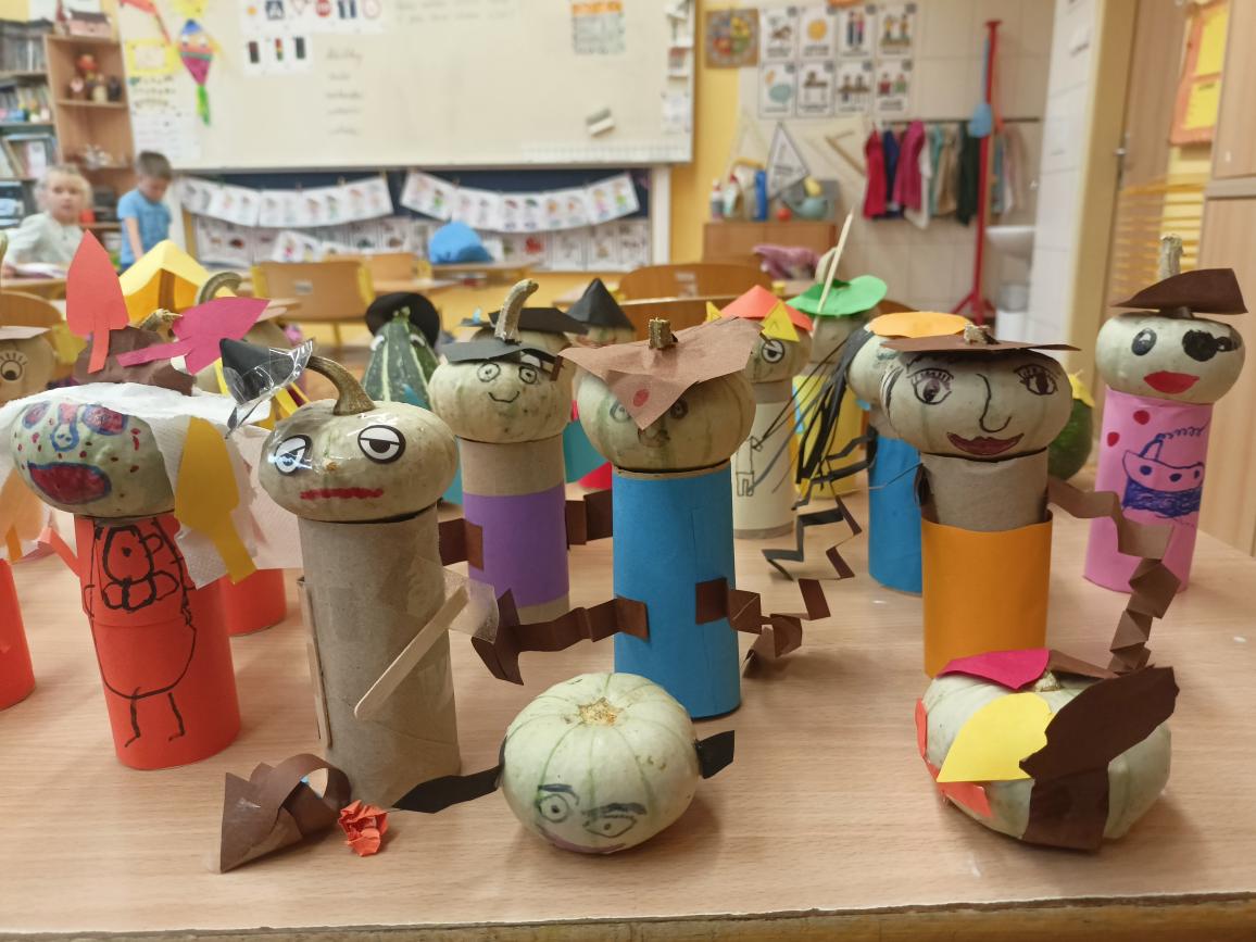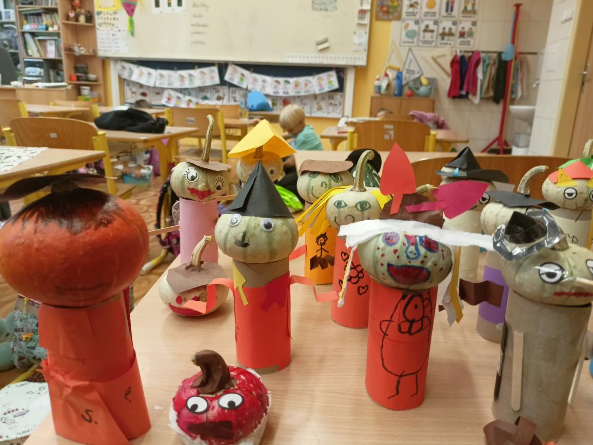Péťova maminka nám do třídy poslala krásné malé dýně a tak jsme je využili na tvoření podzimních skřítků. Každý vyráběl podle své fantazie a výsledek je perfektní.