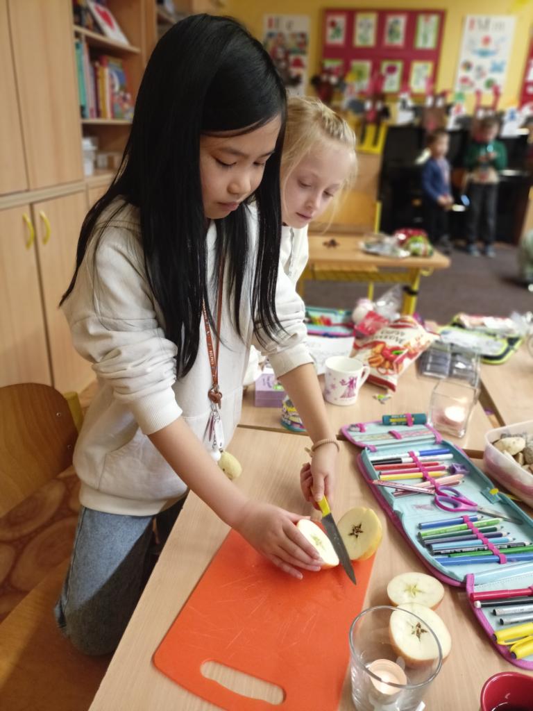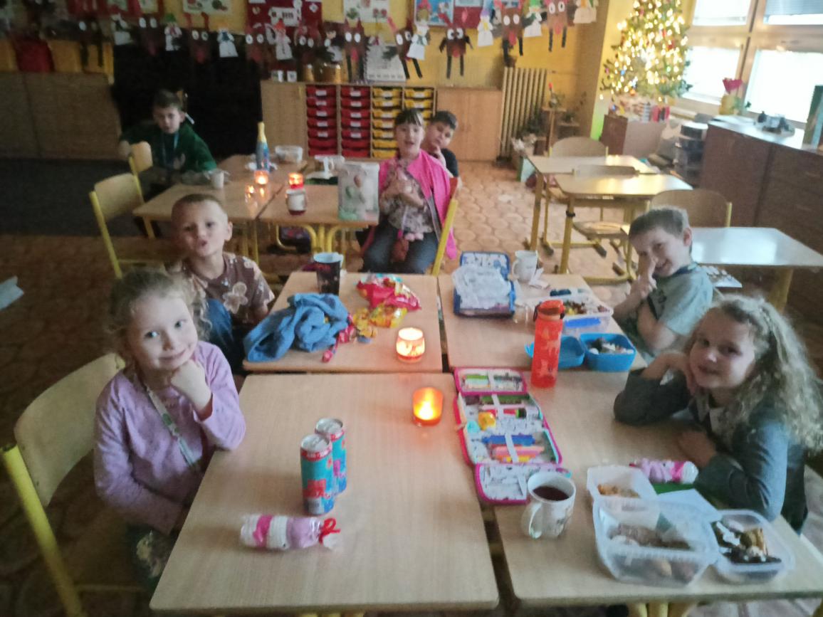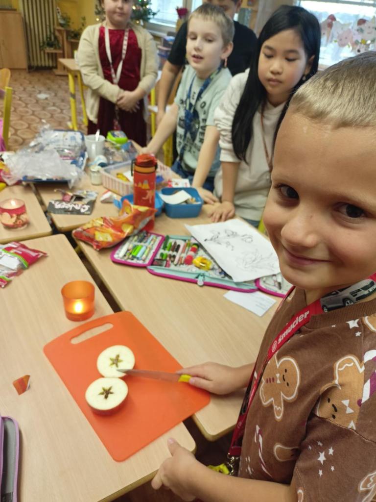 Nadělování dárečků, povídání o Vánocích, tradicích a zvycích, také rozkrajování jablíčka, koledy, dobroty a pohádka...to vše tvořilo Vánoce v 1.B.