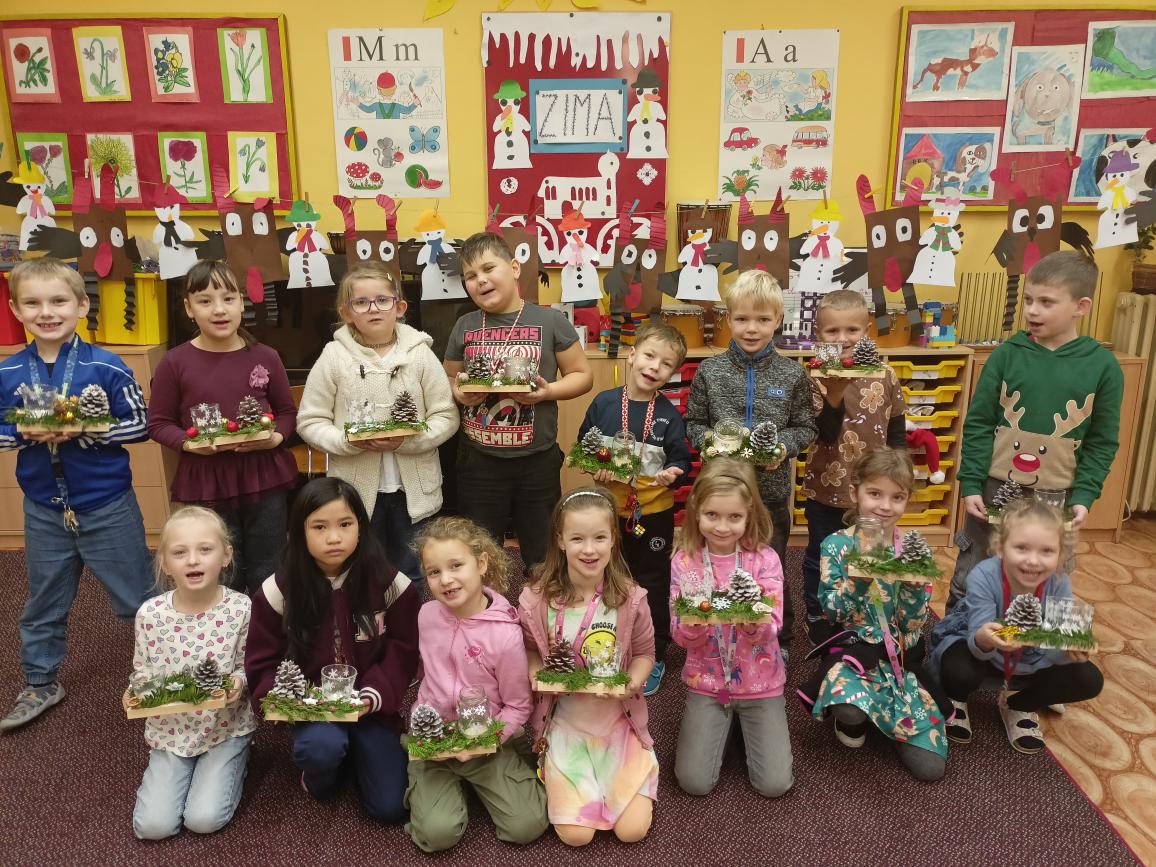 Předvánoční čas jsme věnovali nacvičování na Vánoční besídku a výrobě svícnů pro rodiče. Ve středu 11.prosince už to od rána v naší třídě vonělo Vánocemi. Děti přinesly vánoční cukroví, ozdobili jsme stoly a vykouzlili tu pravou vánoční atmosféru.