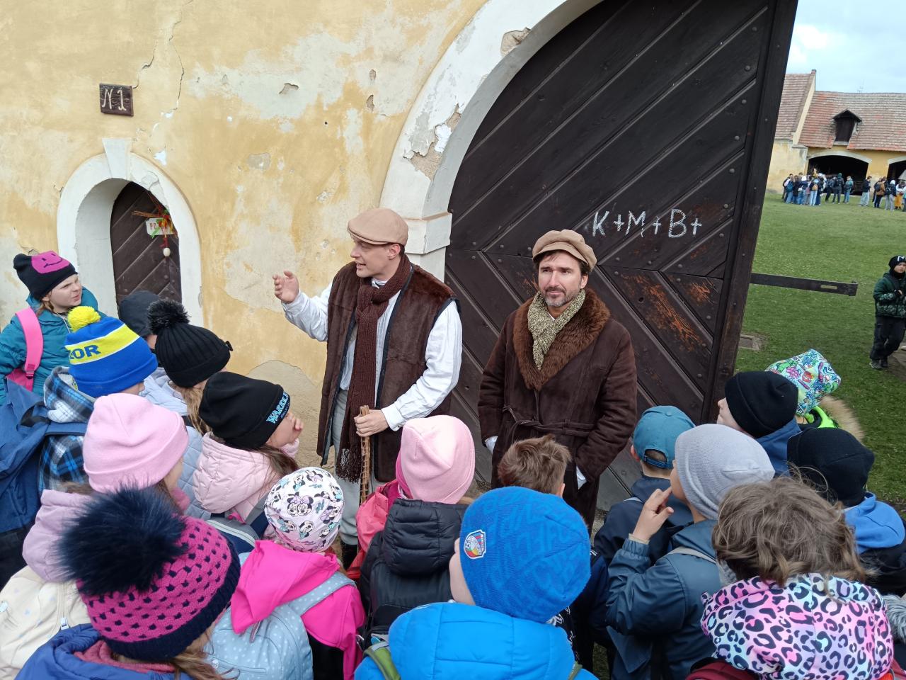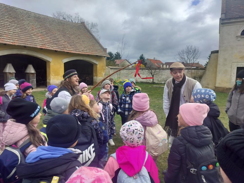 Při příchodu byli panem statkářem přivítáni tradičním pozdravem „Pozdrav Pánbůh“, na který správně odpověděli „Dejž to Pánbůh“, a tím si vysloužili vstup na statek. Programem je provázel čeledín Kuba a děvečka Anička, která dětem představila staročeskou kuchyni. Společně si dětmi povídala o velikonočních dobrotách, jako je beránek a jidáše. Děti měly dokonce možnost ochutnat čerstvě upečený mazanec.