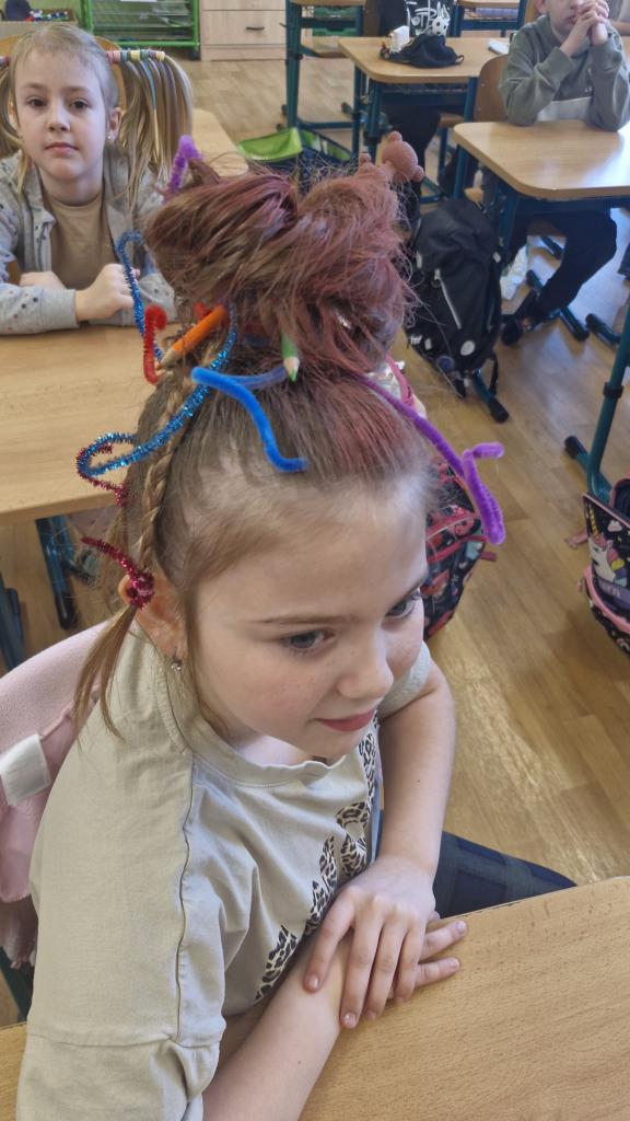 Netradiční den proběhl na celém 1.stupni naší školy v den 13.3.v pátek. Děti mohly přijít do školy s netradičním účesem nebo s nějakou zvláštní pokrývkou hlavy. V naší třídě byli žáci (rodiče) úžasně kreativní...