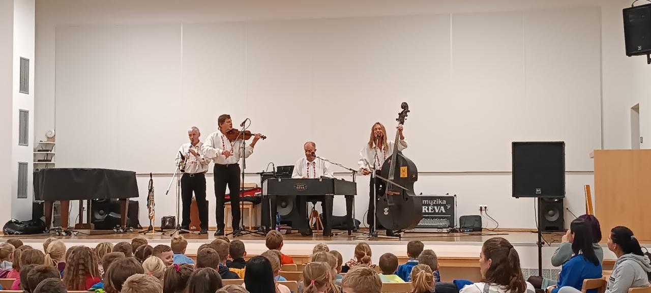 Přijela nám zahrát kapela z Zlína, která kombinuje lidovou hudbu s jazzem, rockem, klasikou a filmovými melodiemi, bylo to skvělé :)