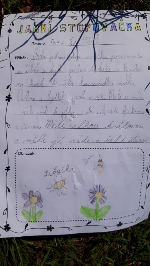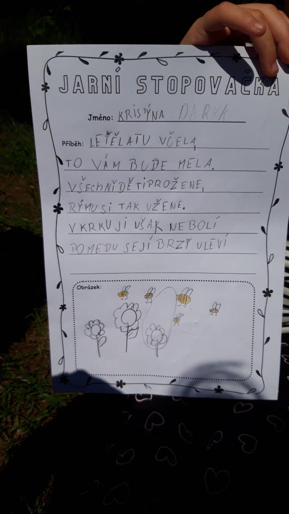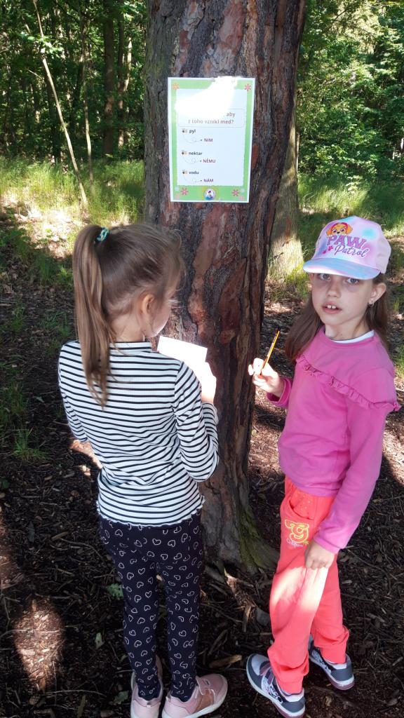 Konečně se umoudřilo počasí a my vyrazili do lesa zopakovat si vše o jaru a včelách. Nejdříve nás čekala stezka, kde jsme vyluštili tajenku a poté jsme vymýšleli příběhy o včelce. Moc se nám povedly. Za to jsme dostali pochvalu a odměnu. Na závěr celého dopoledne jsme si zahráli postřehovku s čísly.