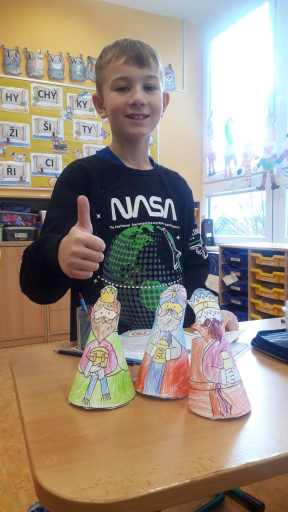 Celý den jsme se věnovali příběhu o třech králích, jejich putování do Betléma, prošli jsme si stezku Tří králů, zazpívali koledu, vyrobili si tři krále a vymýšleli jsme, jaké dary bychom Ježíškovi donesli my.