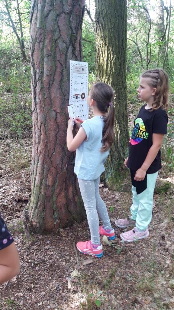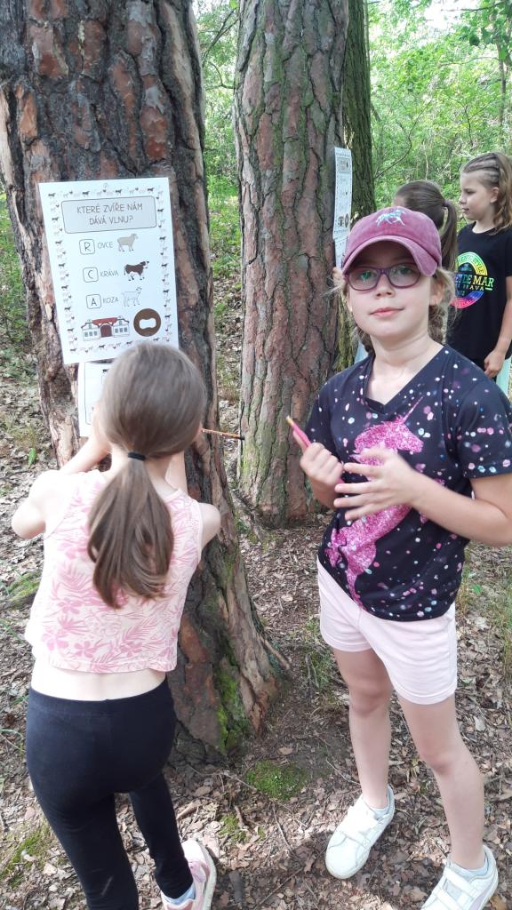 Dnešní slunečný den jsme se opět vydali do lesa, tentokrát putovat za hospodářskými zvířaty. Hodně jsme se o nich naučili v prvouce a tak nám úkoly nedělaly žádné velké obtíže. Tajenka zněla „Hledej poklad na stromě“ a tak nás čekal další úkol, najít poklad. Dalo nám to chvíli docela zabrat, ale nakonec jsme to zvládli. A stálo to za to. Zahráli jsme si i naše oblíbené hry a pak celí hladoví jsme spěchali zpět do školy na oběd.