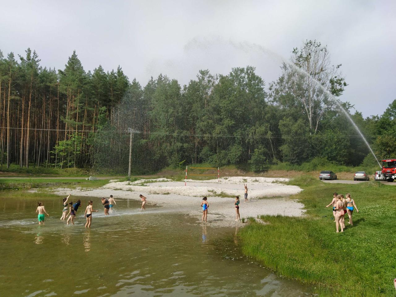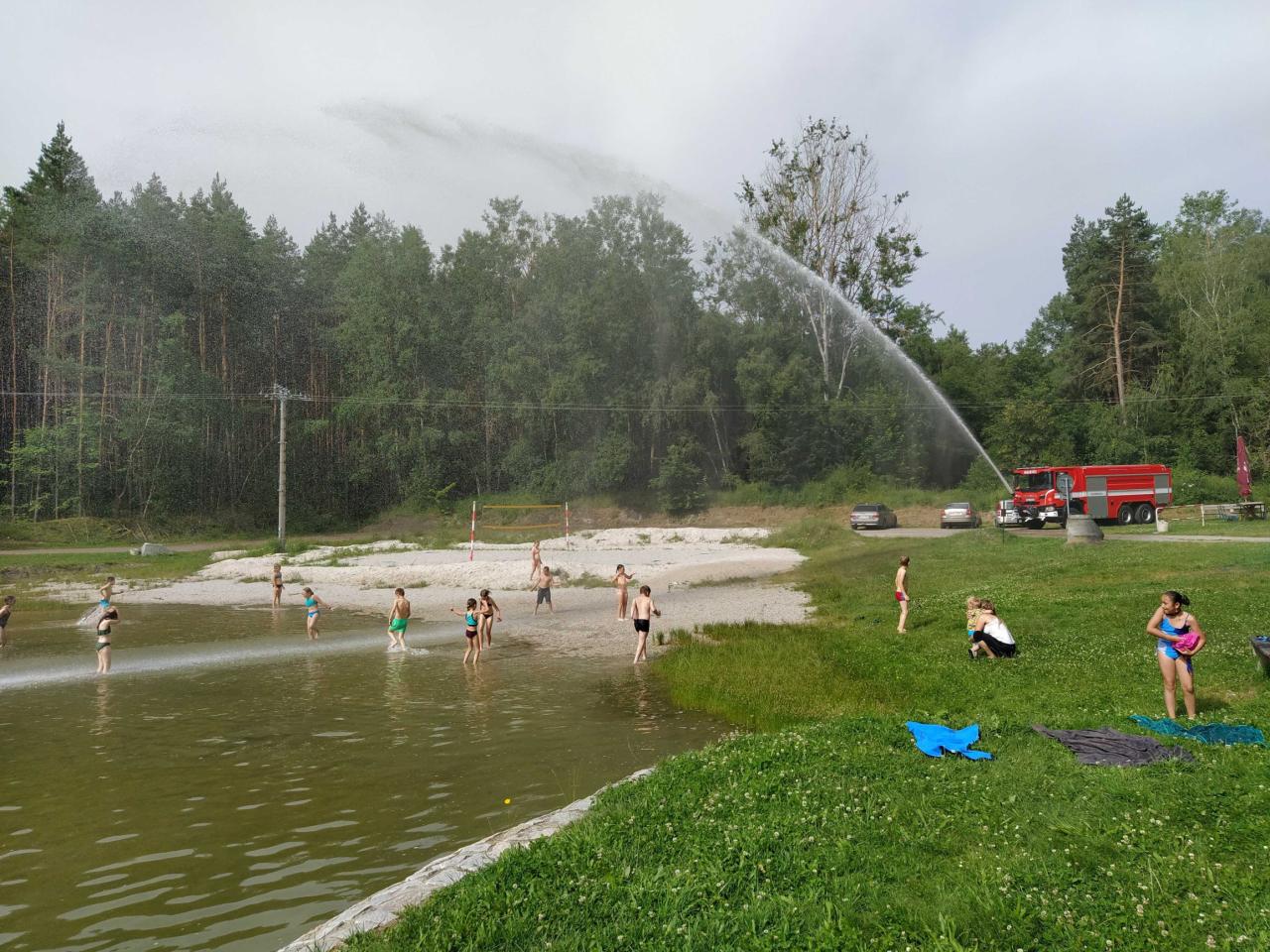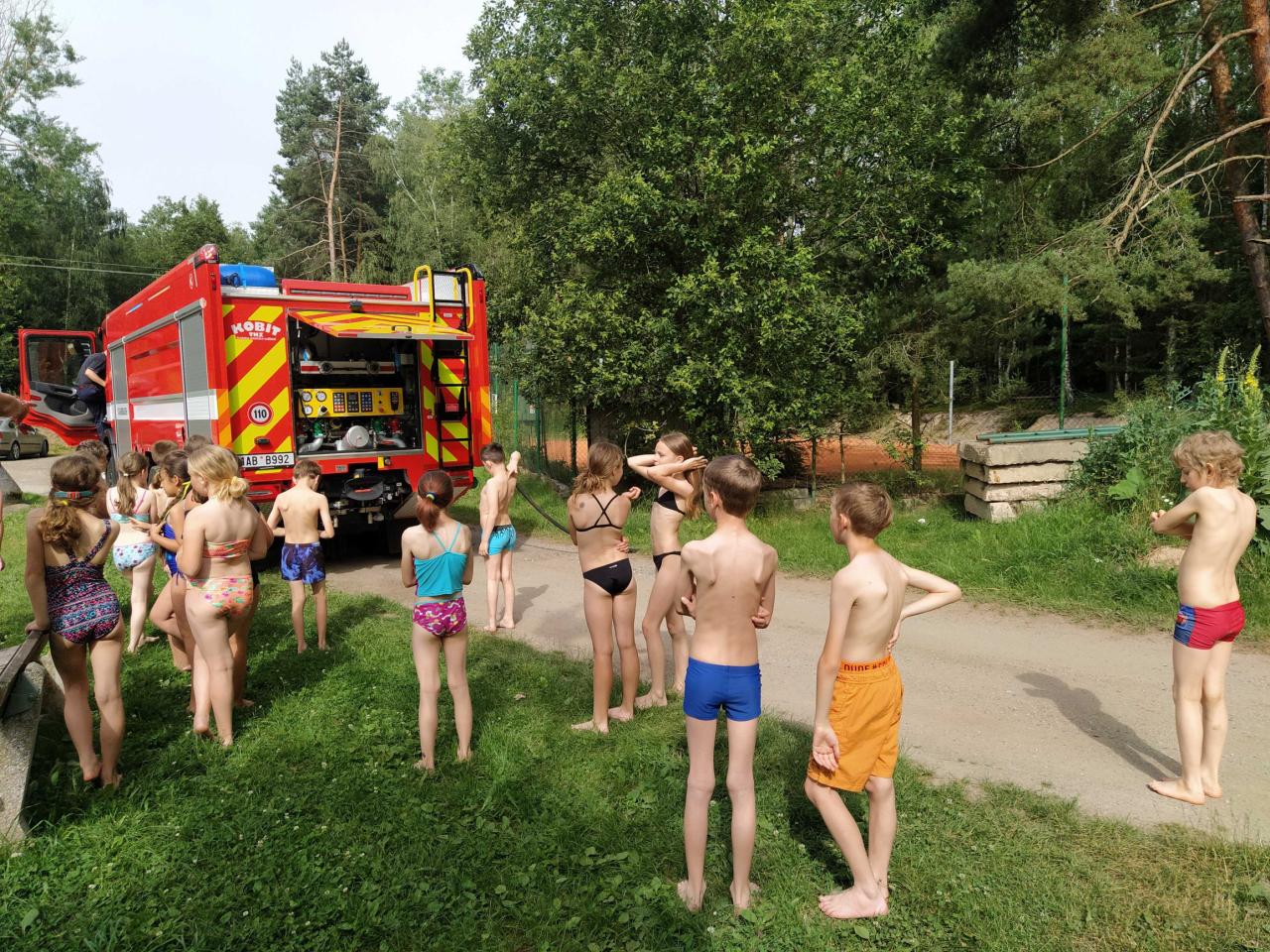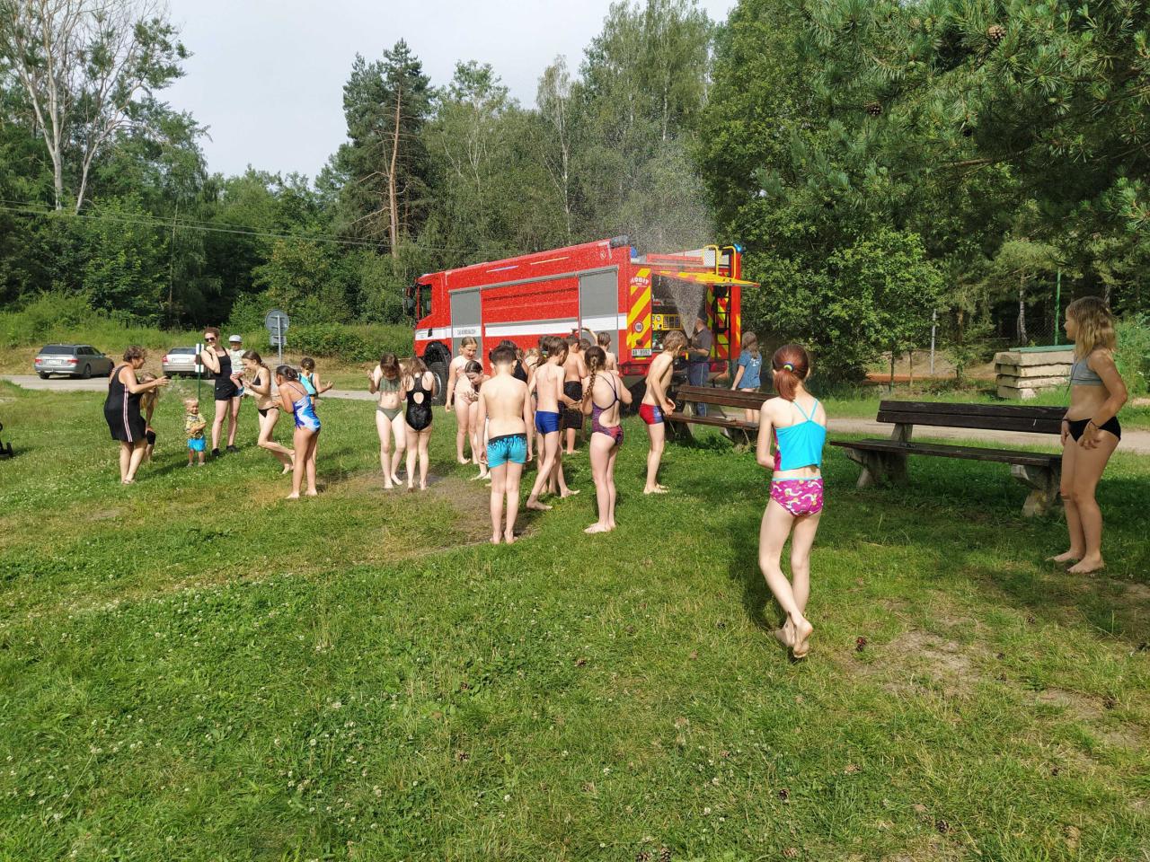 V pátek 21. 6. jsme si pro spolužáky ze 3.B připravili malou stopovací hru, na jejímž konci čekalo všechny velké překvapení. V horkém počasí nás osvěžily nejen studené nápoje z kiosku na místním koupališti, ale také studená sprcha z útrob hasičského vozu.
