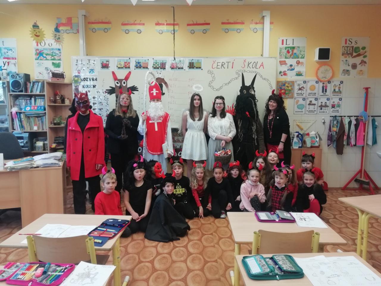 Do naší třídy přišel Mikuláš, Čerti i Amděl. Sice Mikuláš upozornil na zlobení některých dětí, ale nakonec Čert do pekla nikoho neodnesl. Po Mikulášské nadílce jsme plnili čertovské úkoly a všichni jsme si tento den parádně užili.
