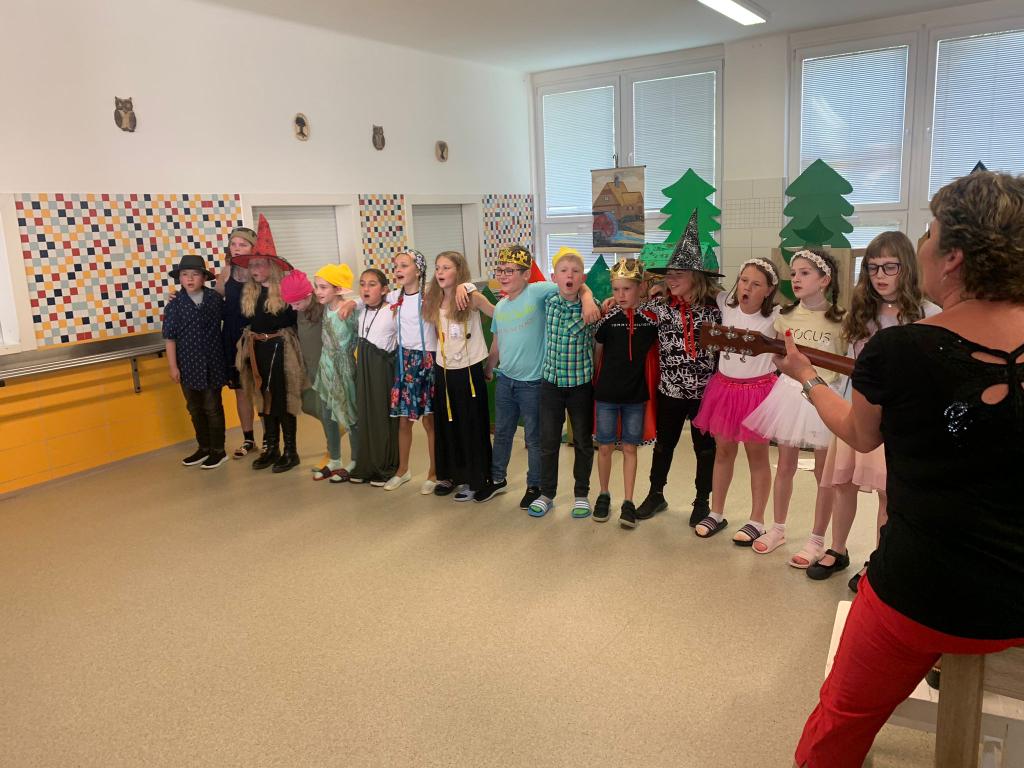 Písničky o naší třídě, dramatizace pohádky, básnička o každém z nás, nadšení, ale také slzičky dojetí, to všechno bylo součástí naší besídky na rozloučenou.