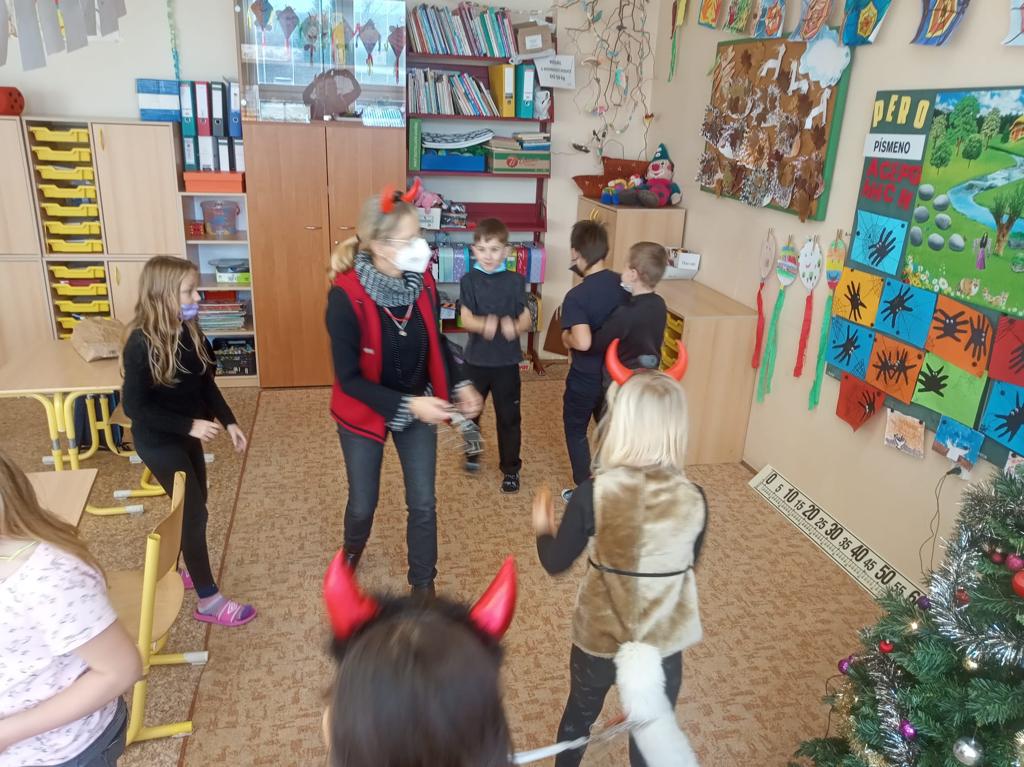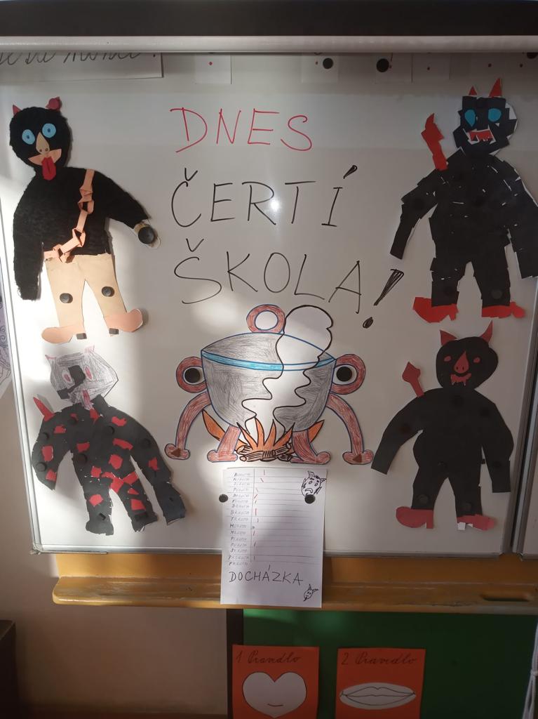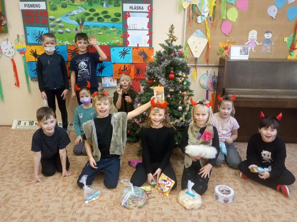Jako každý rok se děti proměnily v malé čertíky a najednou byla třída plná Blekotů .... Učit takové malé neposedy není vůbec jednoduché, ale nakonec si všichni vysloužili čertí vysvědčení s 1 a spousty dobrot. V čem všichni uspěli? V luštění křížovek, počítání chlupů, v uklízení, v házení bramborem a hlavně lenošením.