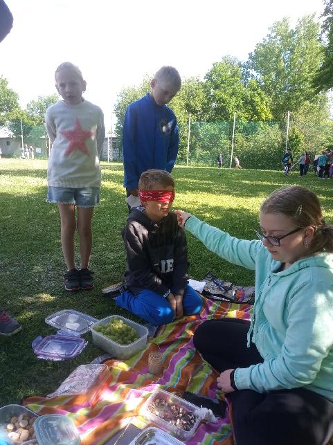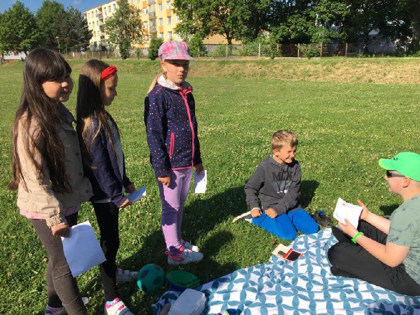 Oslava dětského dne na školním hřišti se opravdu vydařila. Čekalo na nás 10 zábavných úkolů, např.: ochutnávka jídel poslepu, střílení z pistole, zapamatování předmětů, obrácený svět ...