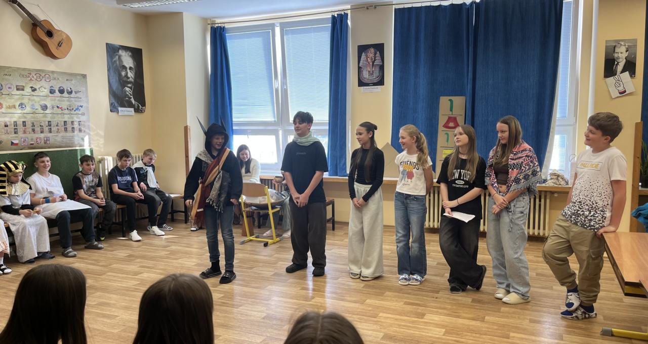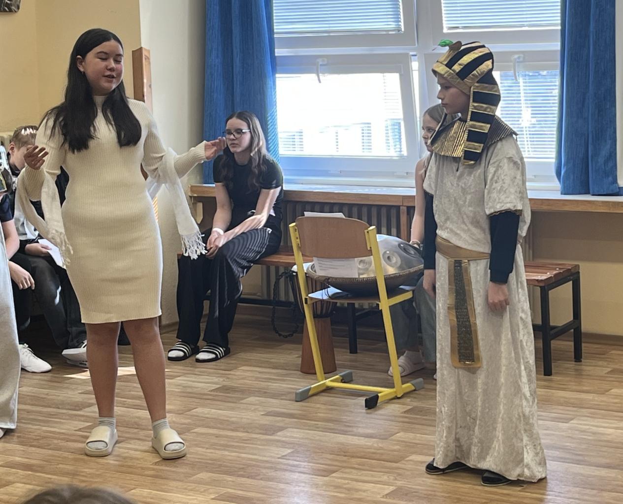 Povídání o krásách starého Nilu, výstavbě chrámu Abu Simbel, náboženské reformě Amenhotepa IV., nebo předčasné smrti faraona Tutanchamona...I to byla témata divadelního představení, které si pro sebe vzájemně připravily třídy 6.A a 6.B :-)