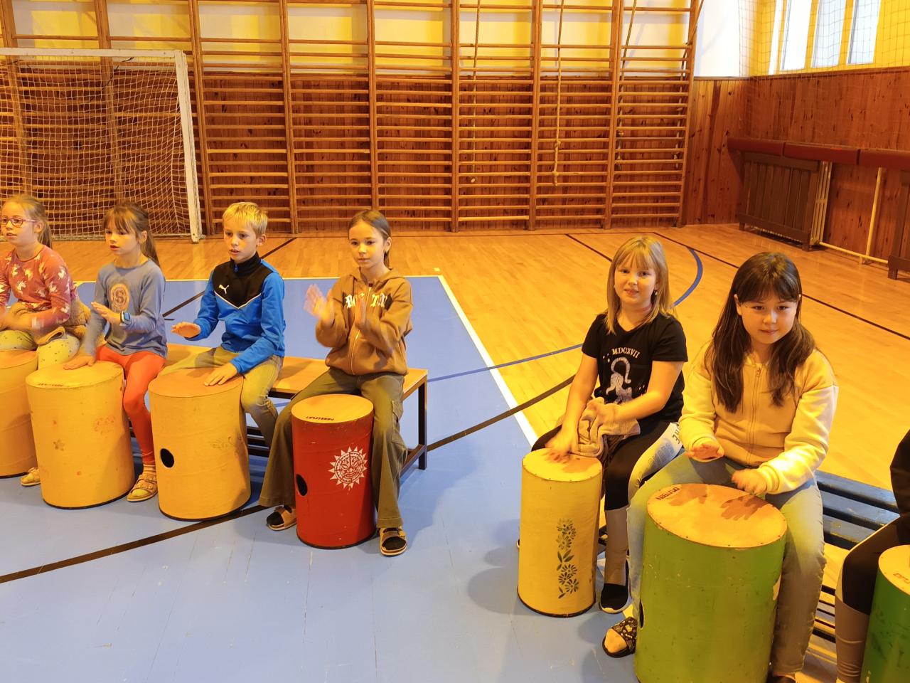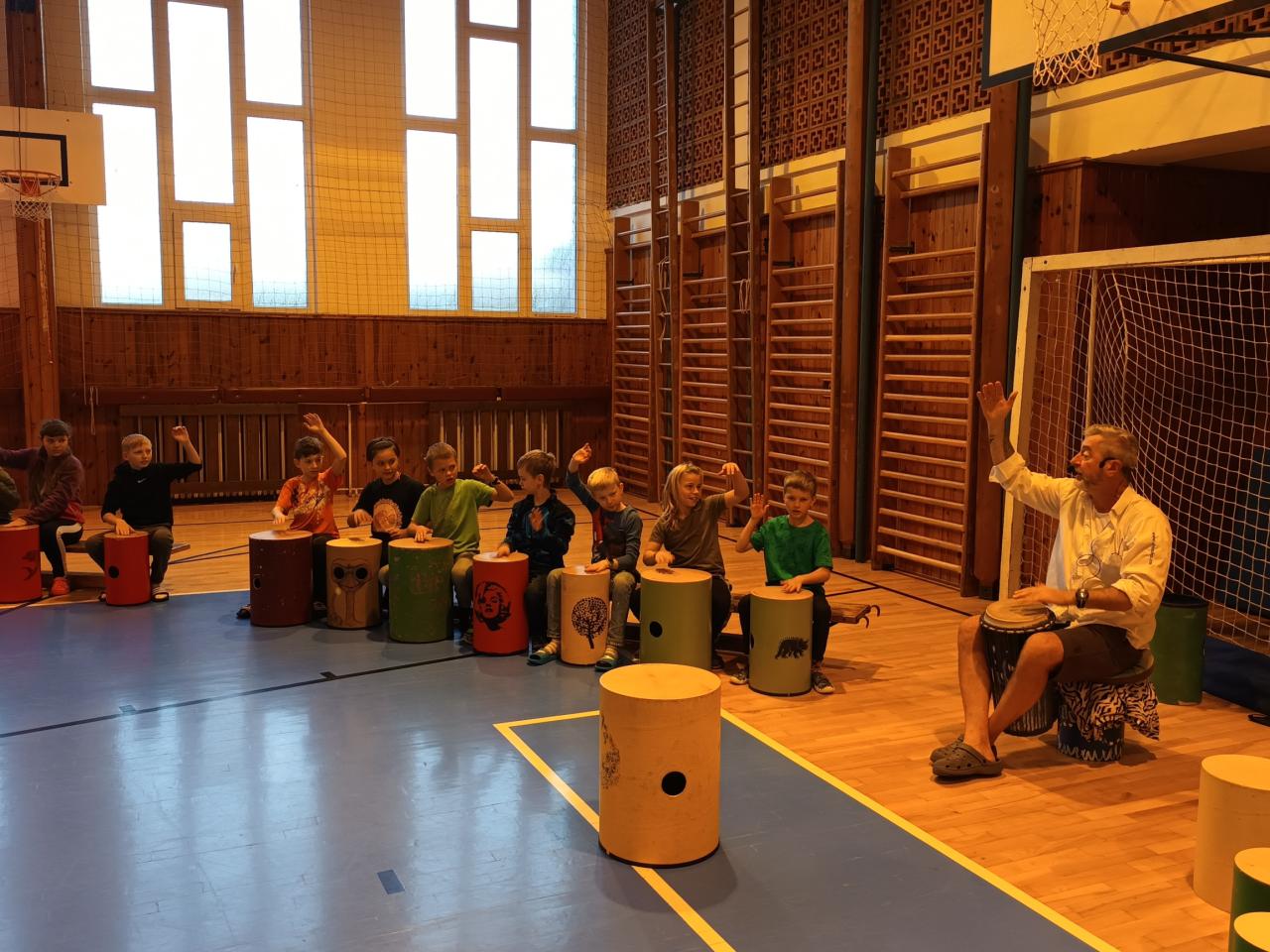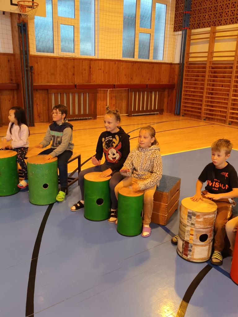 hraní na Drumbeny v tělocvičně