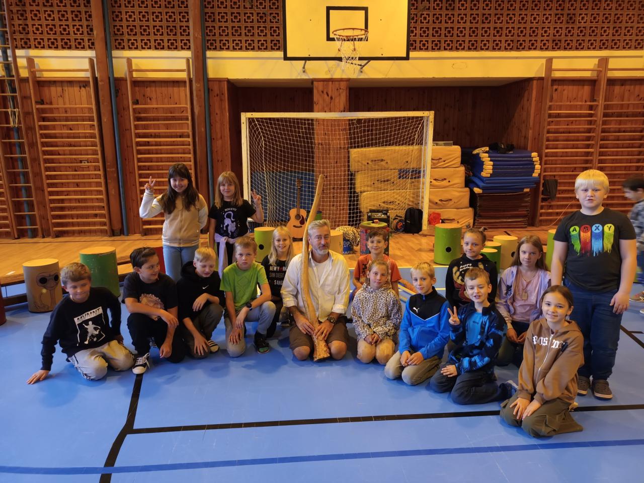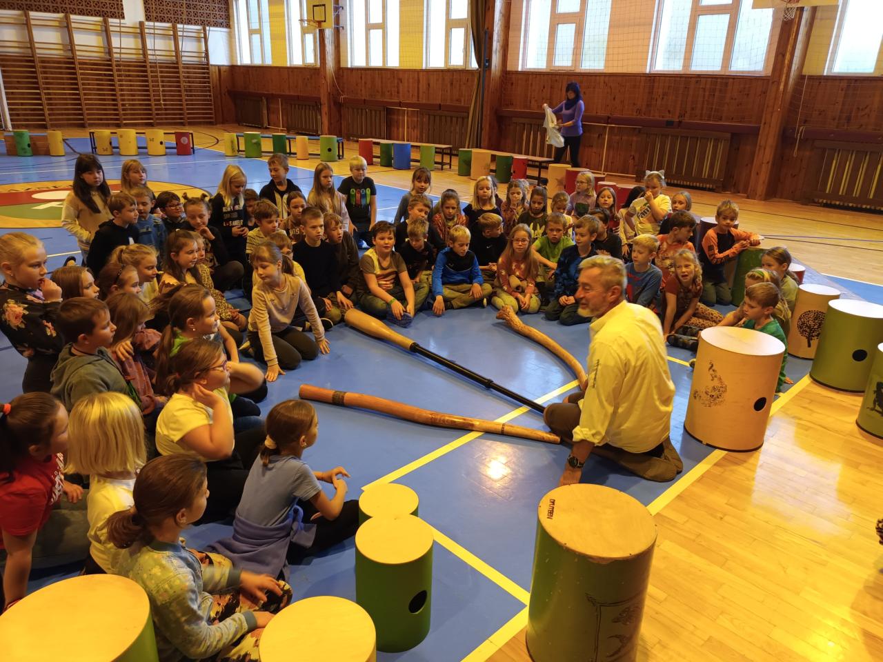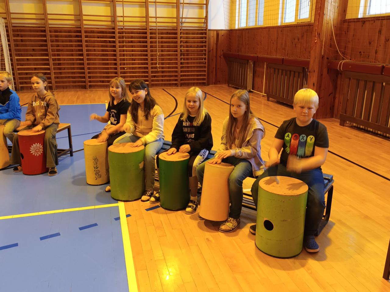 hraní na Drumbeny v tělocvičně