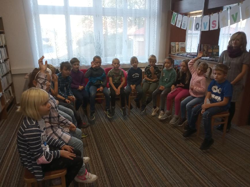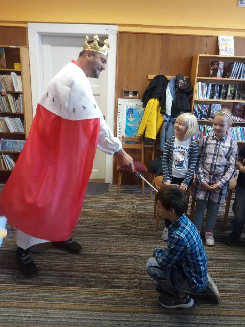 Na konci září jsme byli pozváni paní knihovnicí Tůmovou do místní knihovny. Než došlo k slavnostnímu pasování, dozvěděli jsme se, jak kniha vzniká a jak správně se s ní zachází. Nejvíce jsme se ale těšili na pana krále, který nás po přezkoušení, zda jsme se číst vůbec naučili, pasoval na čtenáře. Po "Slibu knihomilů" a několika hrách, jsme s dárkem odcházeli zpátky do školy. Jaký dárek jsme asi od paní knihovnice dostali? Samozřejmě knihu!