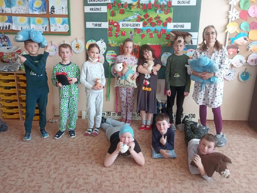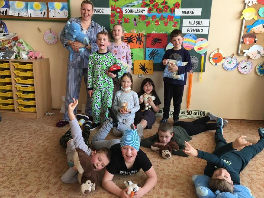 Ve škole se nemusíme jen učit, můžeme i spát. :)) Všechny třídy se sešly na velkém pyžamovém bále, kde jsme my druháci předvedli taneční vystoupení. Také jsme soutěžili, zpívali, zkrátka se bavili jaksepatří. Bylo to fajn, tak zase za rok!