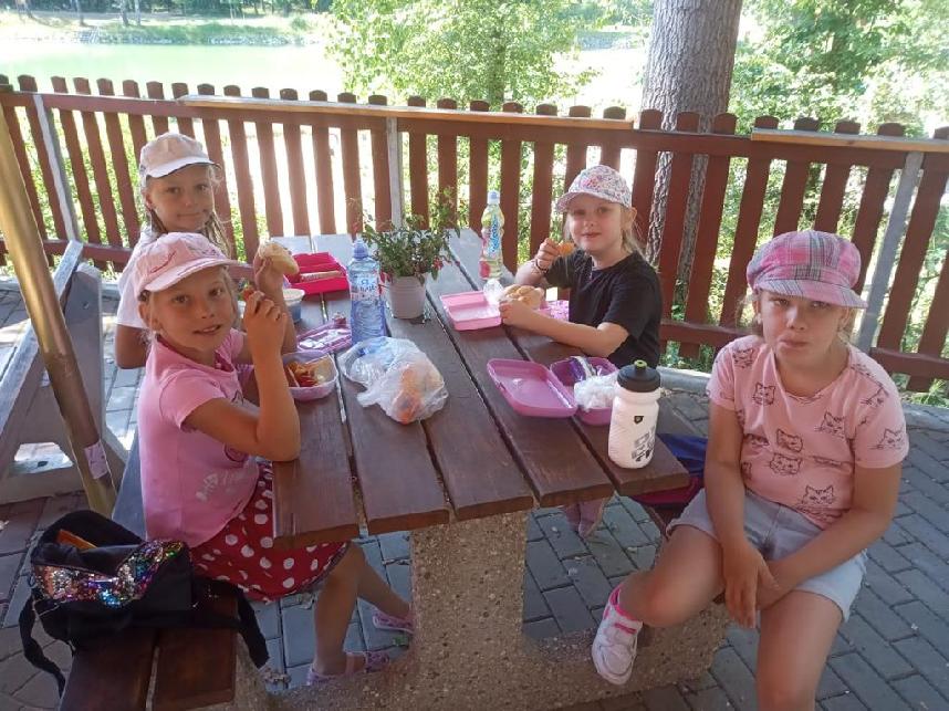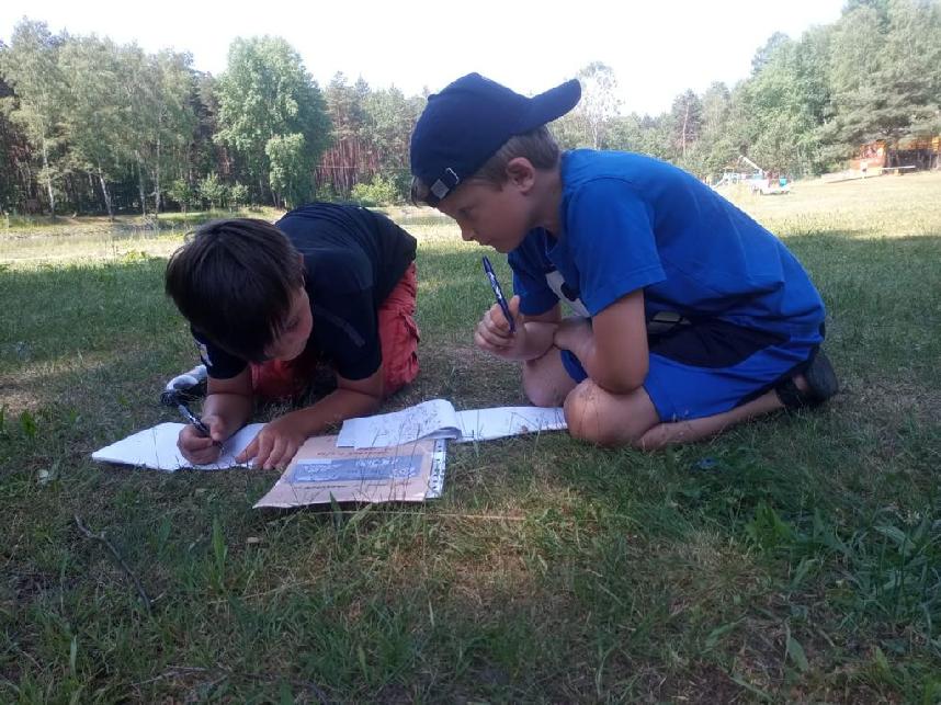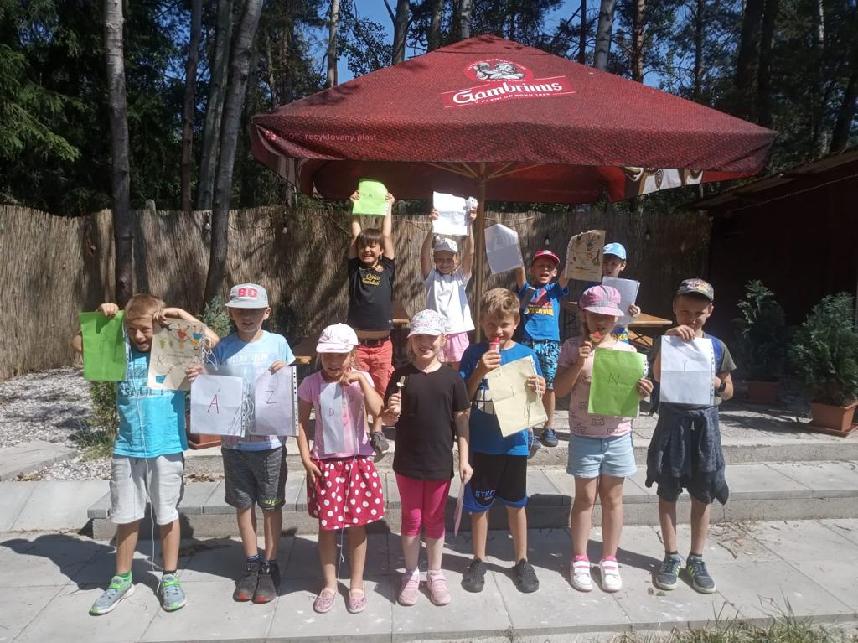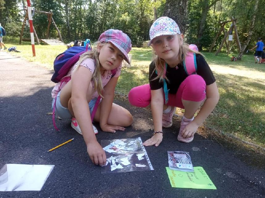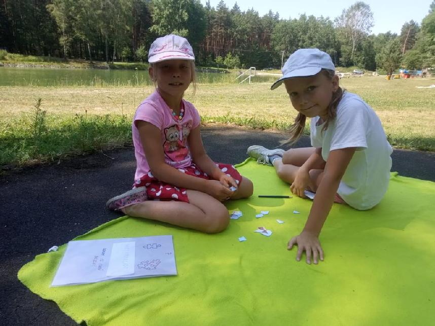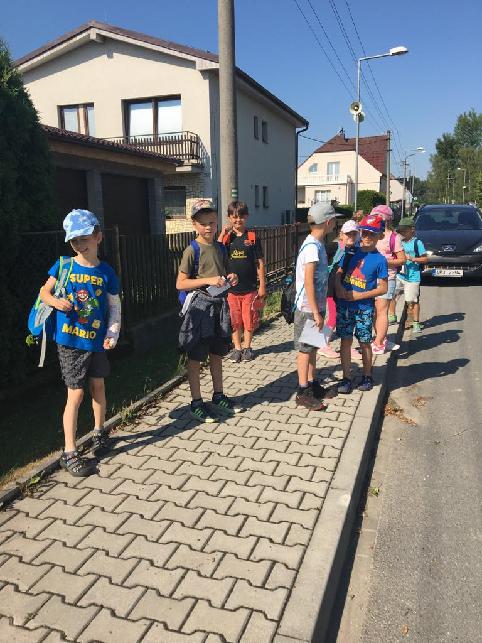 přítomnosti a ochoty naší p. asistentky, která spolu se dvěma děvčaty vyrazily před námi, aby pro zbytek třídy připravily „tajnou „ trasu. Perfektně označená cesta nás dovedla na místní koupaliště. Celá trasa byla zpestřena 14 úkoly, které bylo třeba splnit, aby bylo získáno písmenko do tajenky. V cíli jsme ze všech získaných písmenek tajenku zdárně vyluštili, ještě splnili několik úkolů i si chvilku pohráli. Nečekaně přijel i pán z bufetu, tak byly i nanuky.