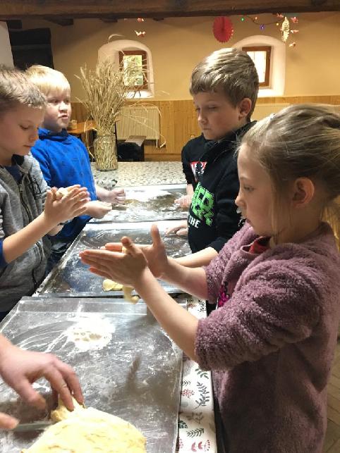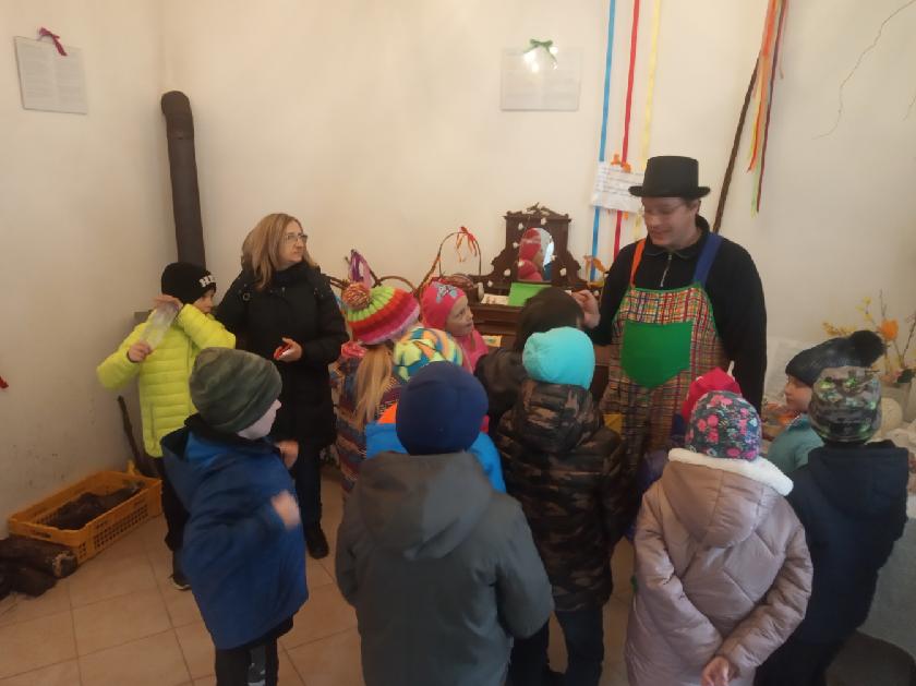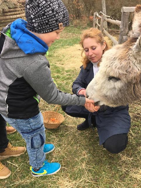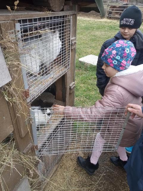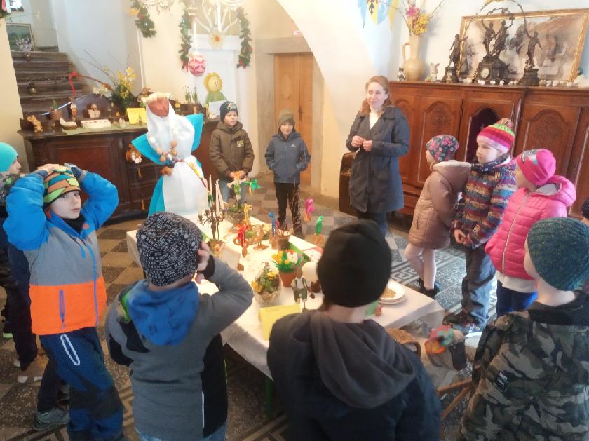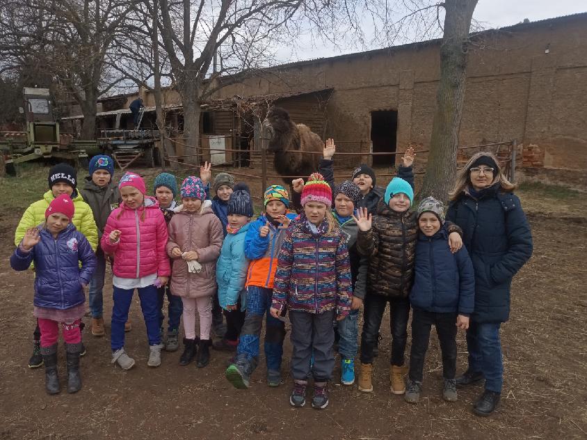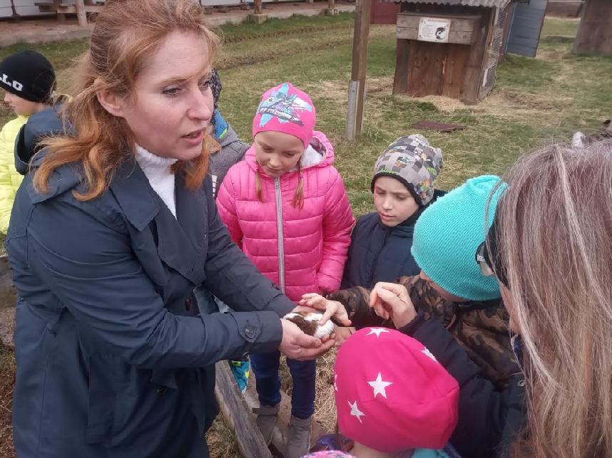 V době Velikonoc jsme zajeli do Újezda nade Mží, kde má paní Slepičková farmu plnou zvířátek. Chová převážně domácí zvířata - spousty slepiček, hus, králíků. Z větších zvířat jsme viděli koně, osly, ovečky s jehňátky, pštrosy, prasata, lamy, kravičku a velblouda. U všech výběhů či klecí jsme vyslechli zajímavé povídání a několik zvířátek jsme si dokonce směli nakrmit a pohladit. Kromě toho jsme si prošli všemi velikonočními tradicemi od Sazometné neděle do Velikonočního pondělí. A to doslova! Prováděli jsme setí obilí do kalíšků, zdobení zápichů, pečení jidášů, rajrání řehtačkami, šupání pomlázkou (kluci - holky, ale i naopak), zavazování mašliček. Říkadlem jsme otevřeli dveře, za kterými se skrýval poklad. Kousíček pokladu v podobě kamínku dostal každý od skřítka na památku.