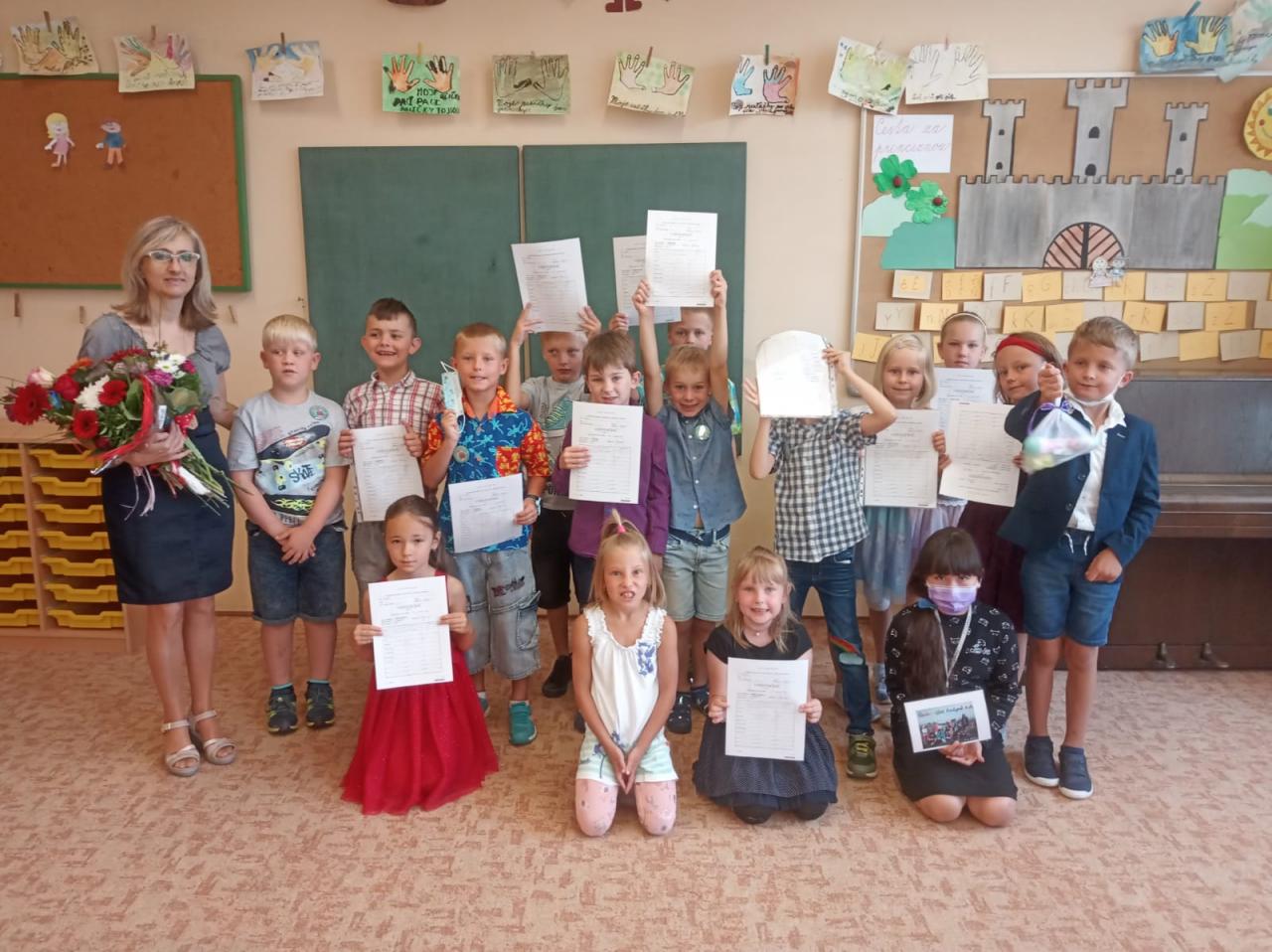 Školní rok utekl jako voda a prvňáčci dostali svá 1. vysvědčení. Nakonec zazvonil zvoneček, aby popřál dětem krásné prázdniny...