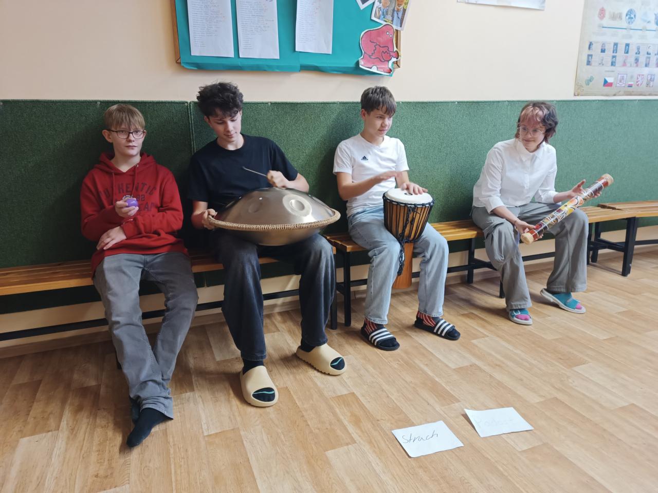 Láska, strach, soucit, radost..žáci si na hudebce vyzkoušeli, jaké to je ztvárnit emoce pomocí hudebních nástrojů:-)