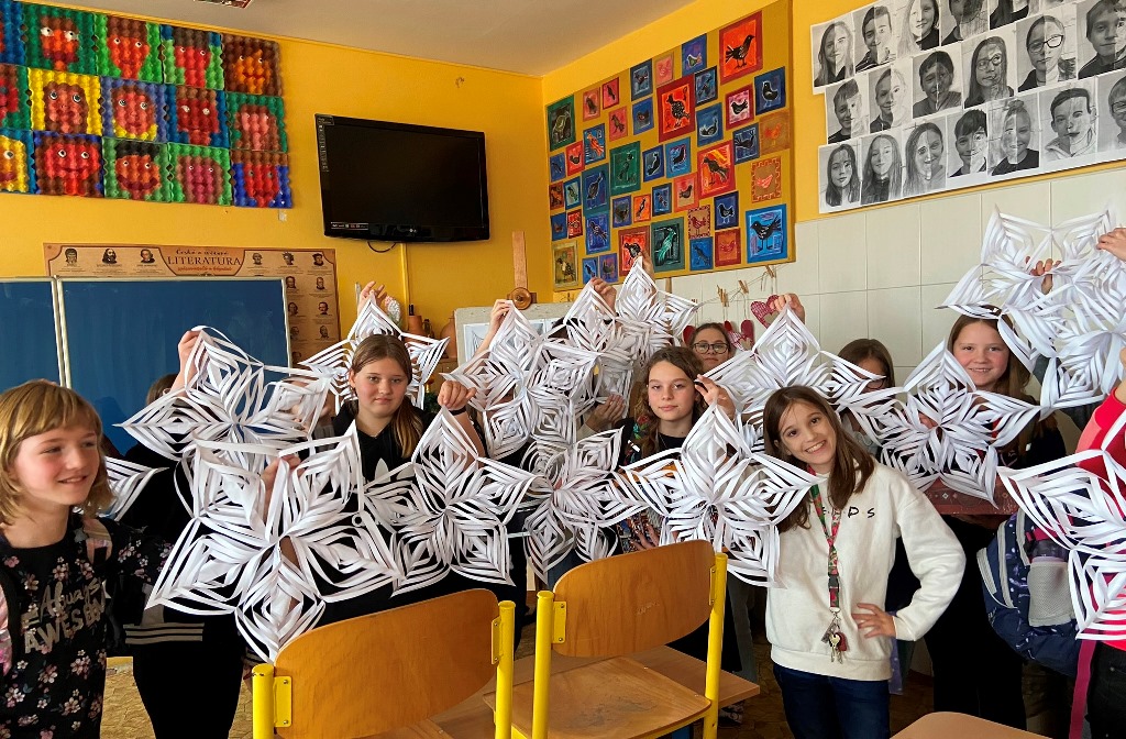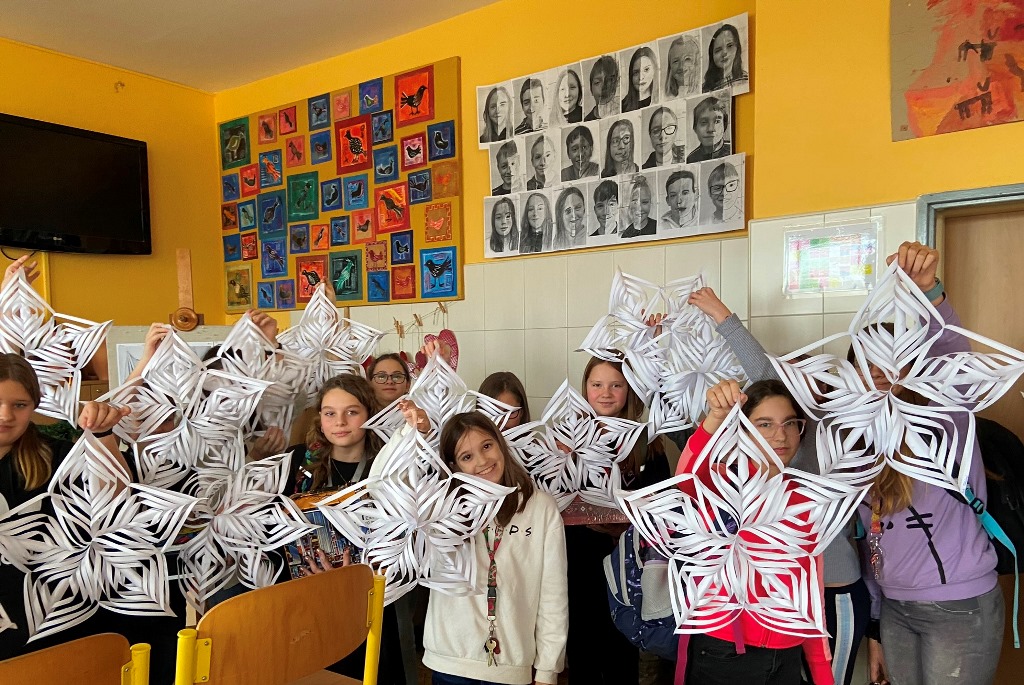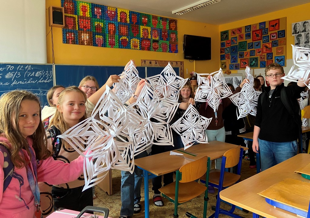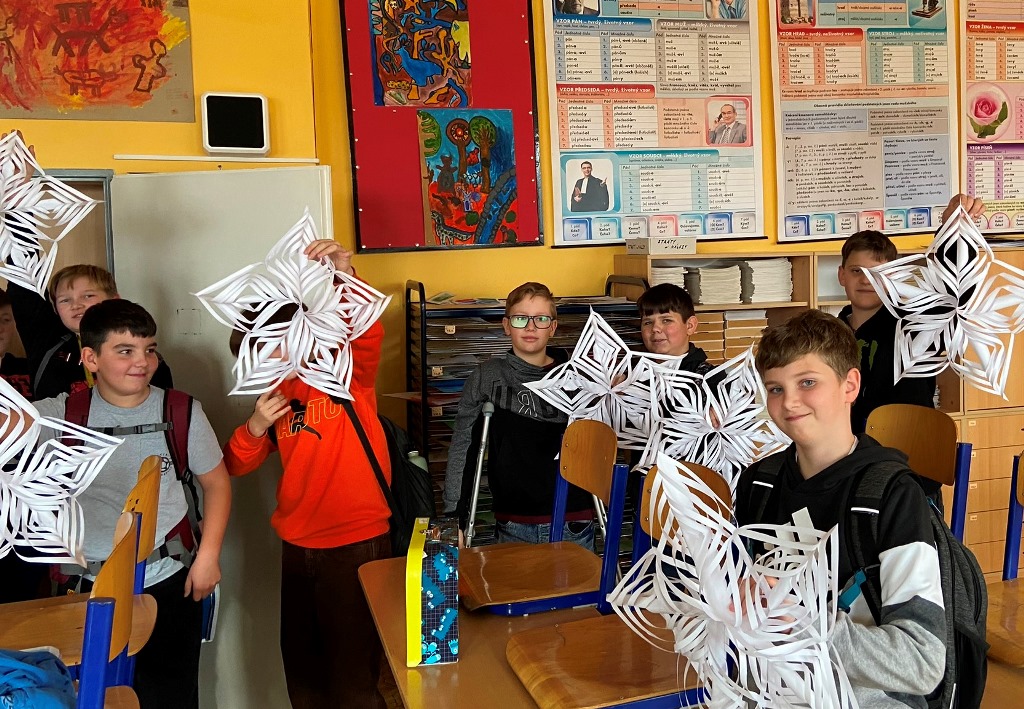 Žáci si při výtvarné výchově vyrobili vánoční hvězdy.